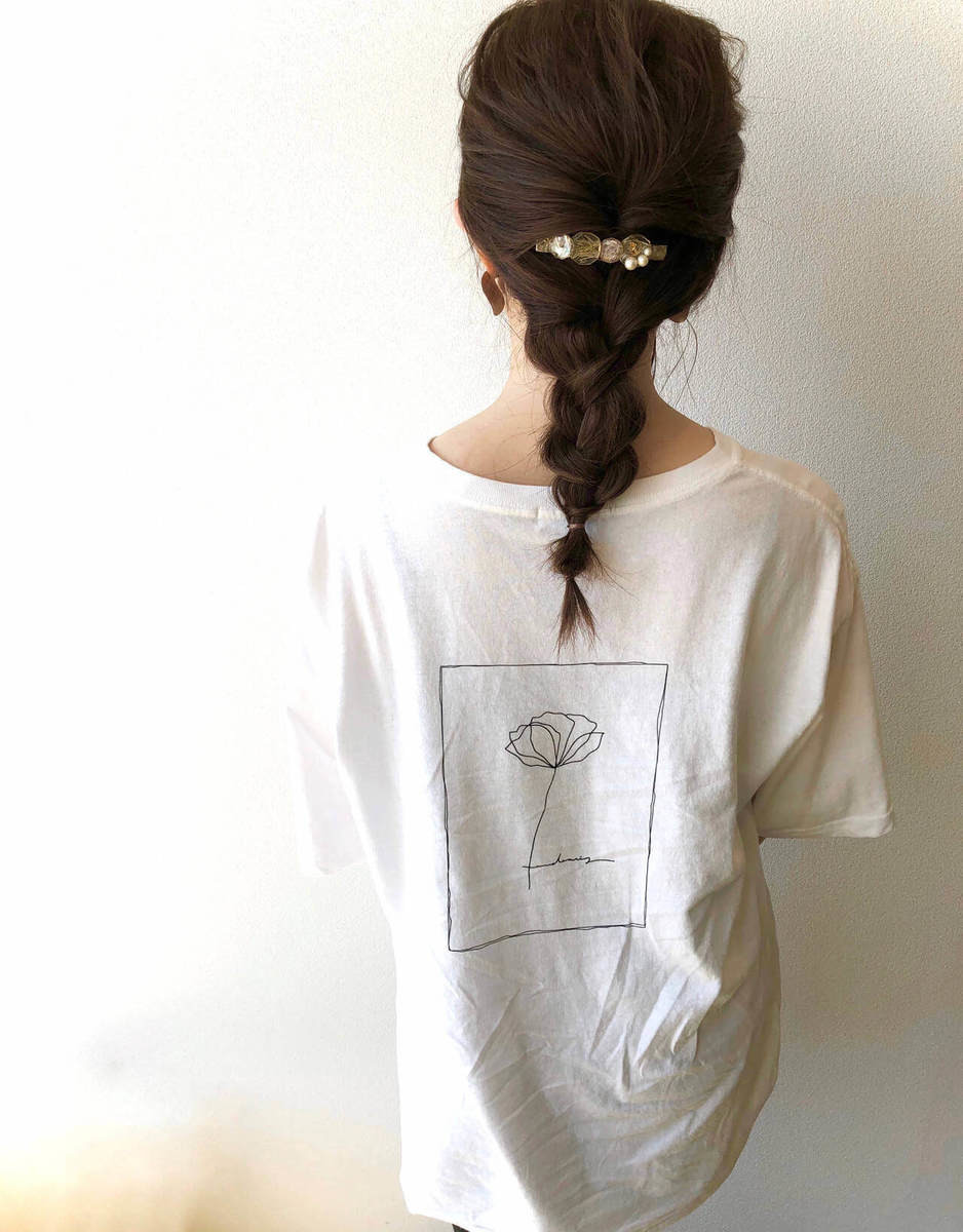 - 左側の三つ編みの毛先も右側の耳後ろでピンで留めたら完成です。