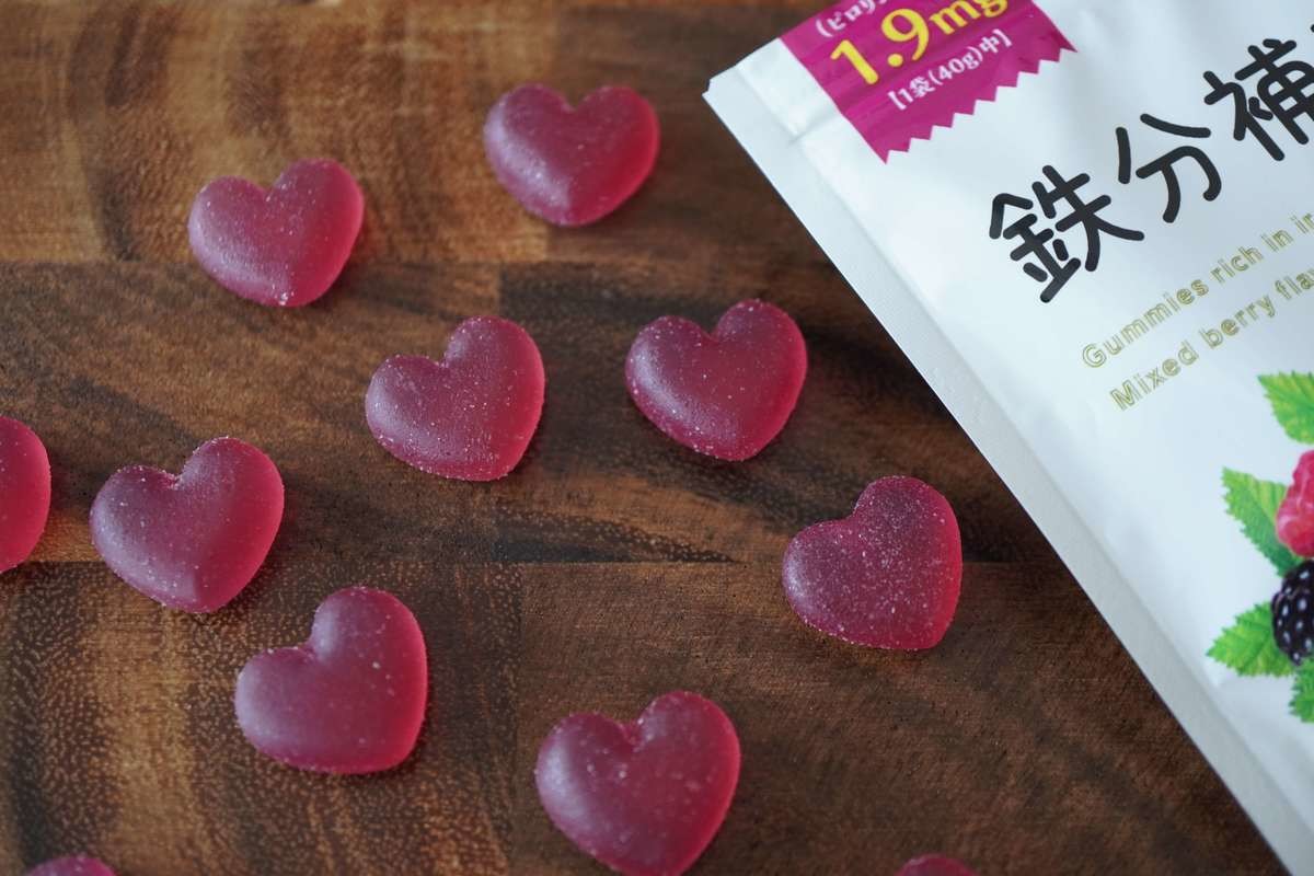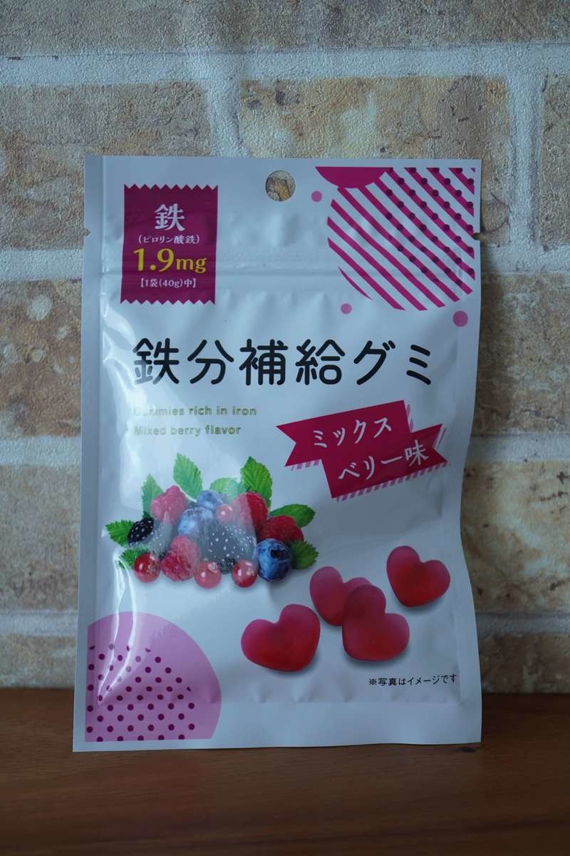 こちらは「鉄分」が補給できるグミで、1袋あたり1.9㎎の鉄分を補給することができます。
