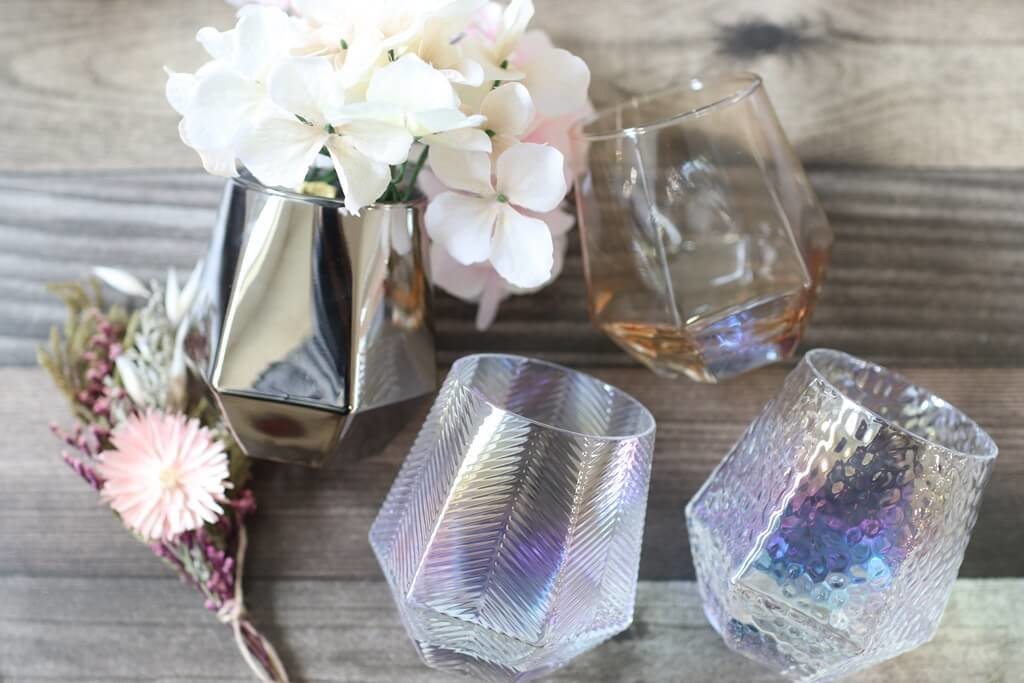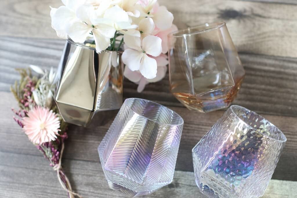 日々の生活でダイソー商品には本当にお世話になっているのですが、今いち押ししたい商品が「六角グラス」なんです!とってもかわいいその形!コロンとした六角フォルムがたまりません!今はやりのオーロラグラスタイプもあり、好みで選ぶことができちゃいます。買って損なしの商品なんです。