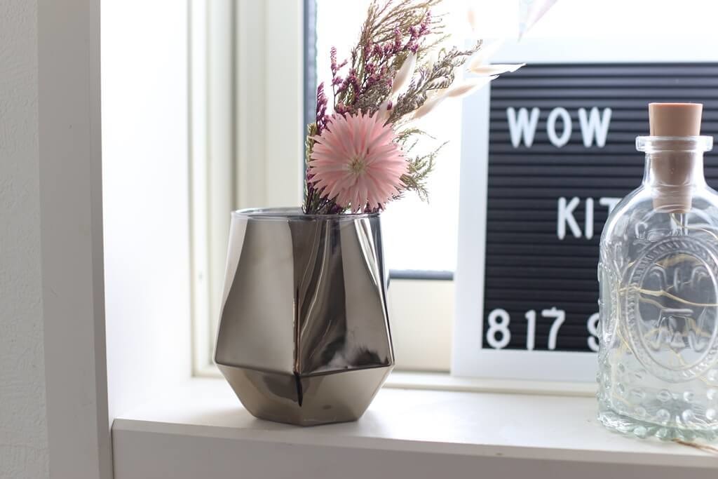 最近はやりのドライフラワーを入れても雰囲気が変わって素敵です♪
