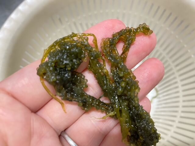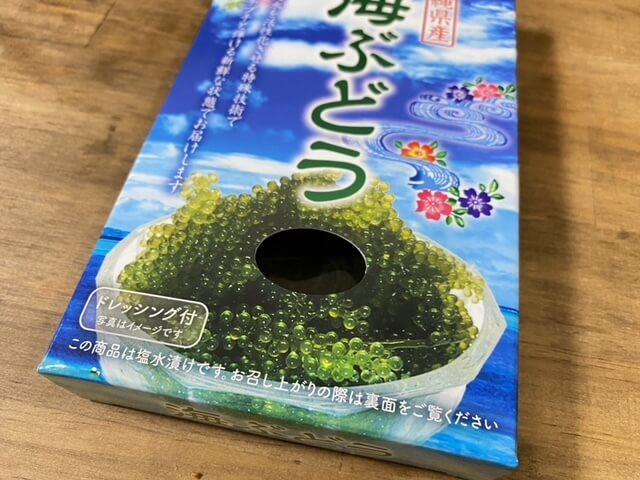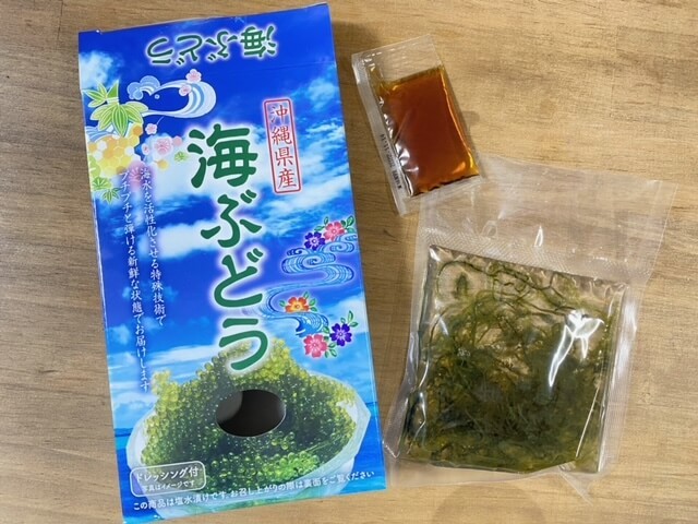 水漏れがないように、しっかりとパックされた海ぶどう。正直、プチプチ食感が味わえるような見た目ではありませんね……。