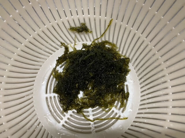 手順③:戻った海ぶどうをザルに移し、軽く水洗いする