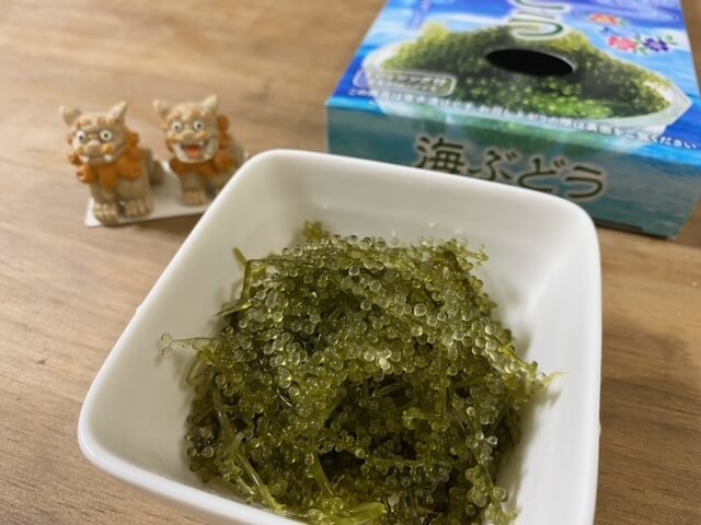 海ぶどうはクビレズタという海藻の一種なので、鮮度が鍵を握る食材です。以前、沖縄県外で食べた海ぶどうは、食感もなく残念な感じでした。