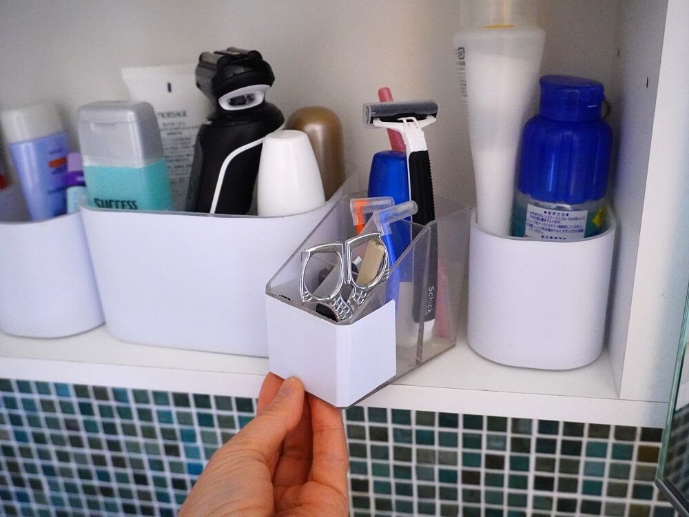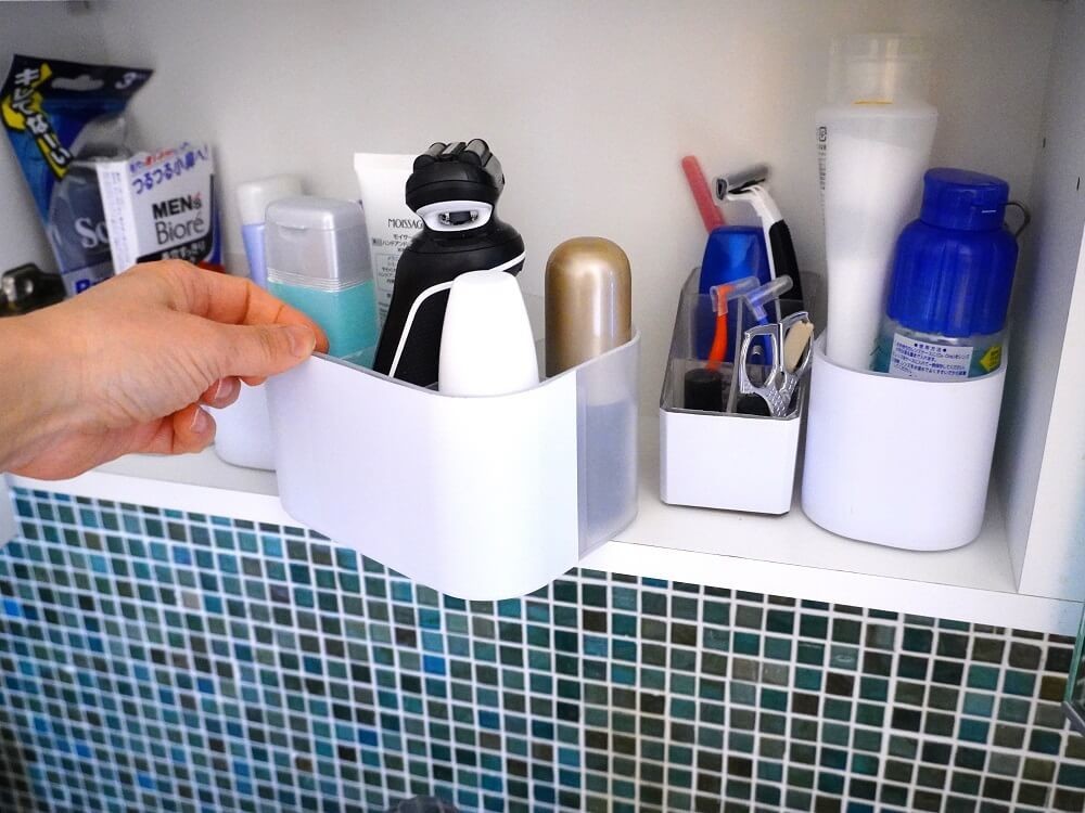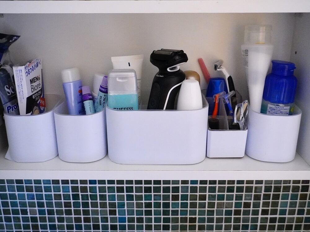 1.自立しないコスメやケア用品は分類収納でスッキリ