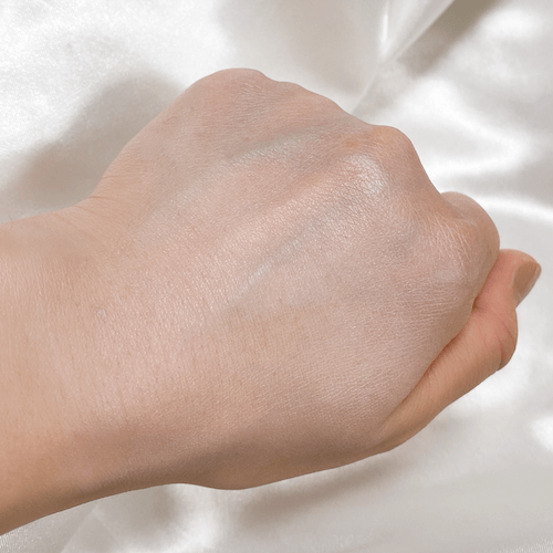半分だけ塗ったときには、結構差が目立つようにも見えましたが、全体的に塗り広げて手のひらで上からそっとおさえてなじませてみると、不思議とナチュラルで透明感もあります。