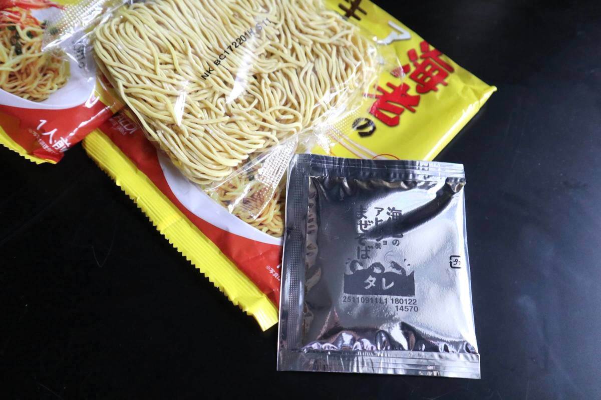 内容は、ノンフライ麺とタレです。 茹でた麺にタレを絡めて完成!