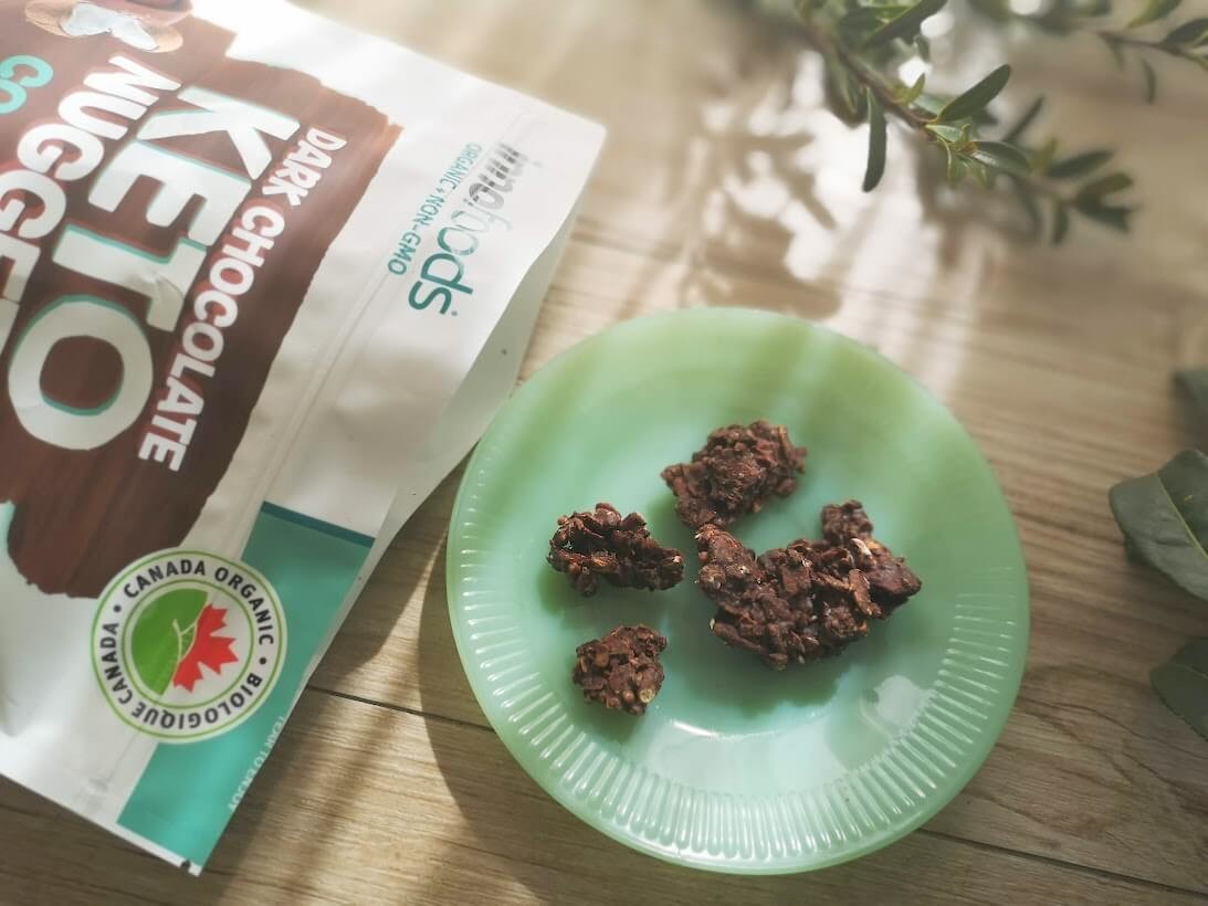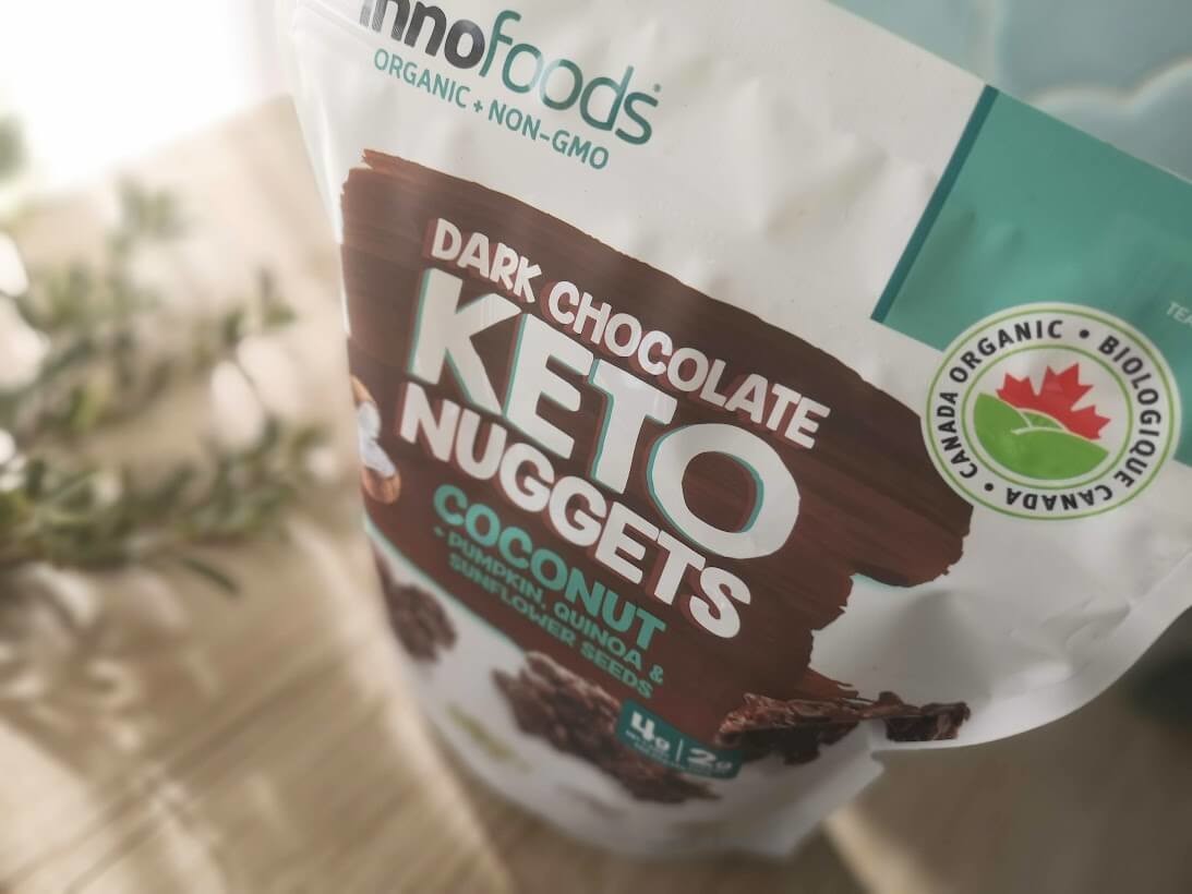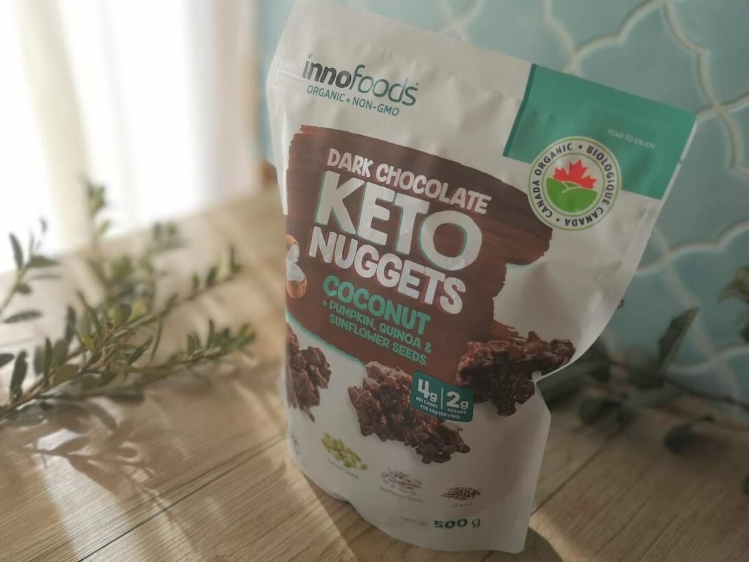 1つ目の商品はこちら! 「ケトナゲット」という商品でナッツをチョコレートでギュッと固めたものがガサガサっとたくさん入っています。