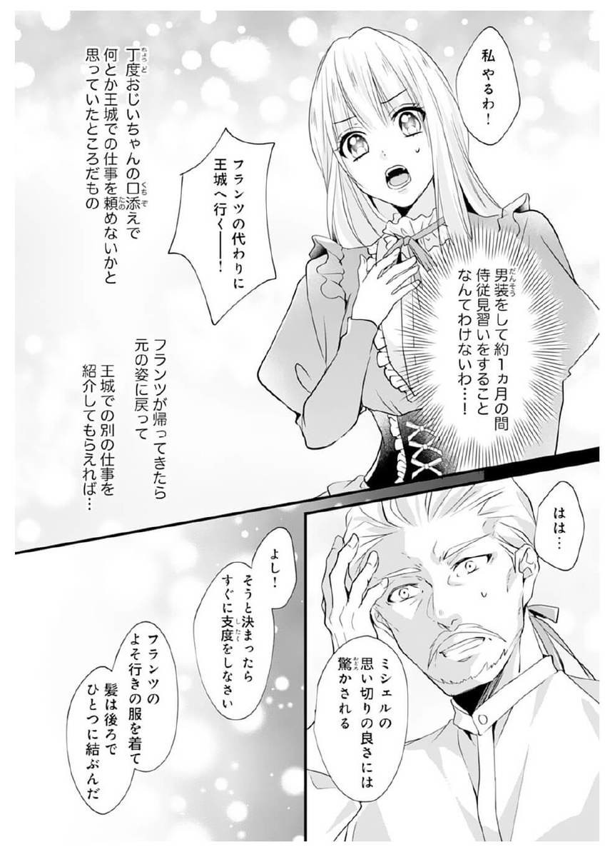 しかしある日、侍従頭を務める祖父から「ミシェルの双子の兄・フランツの代わりに、侍従見習いになってくれ」と頼まれ、ミシェルは男装して王城へ向かうことに!