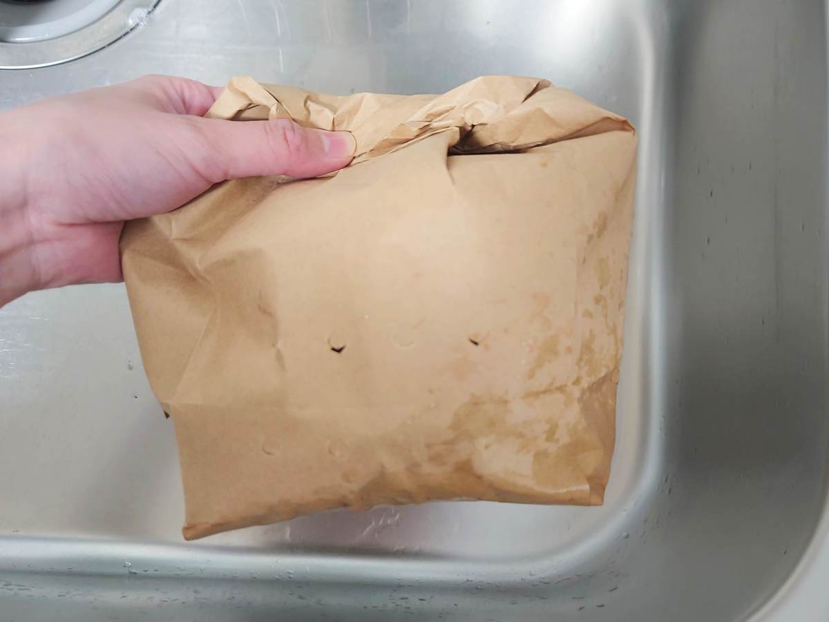 水切りの時に袋をあまり押し付け過ぎると、袋が破れるので力加減には注意が必要です。