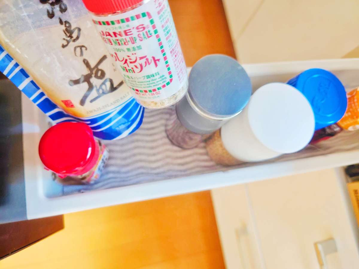 調味料コーナーの底にも敷いてみました。