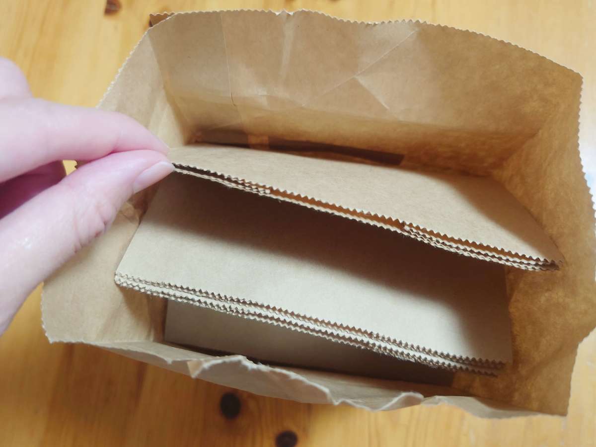 紙パッケージの中には、紙袋が取り出しやすいようにたたまれて入っていて、上から1枚ずつ取れるようになっています。