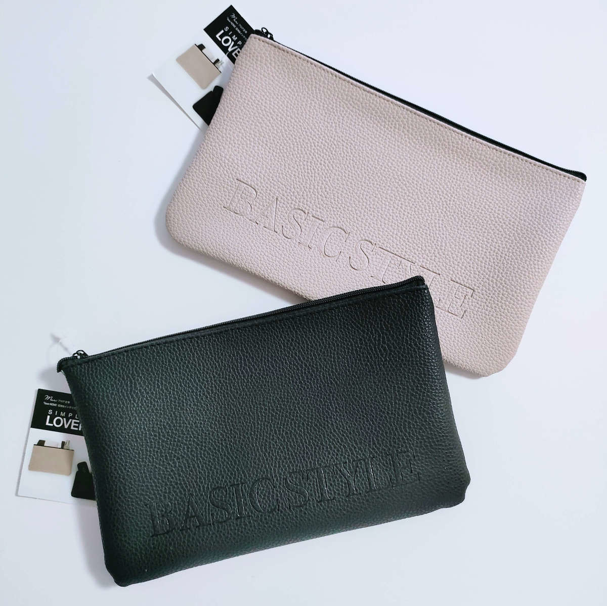 フェイクレザーが高級感を演出してくれ、110円とは思えない高見えなポーチです。