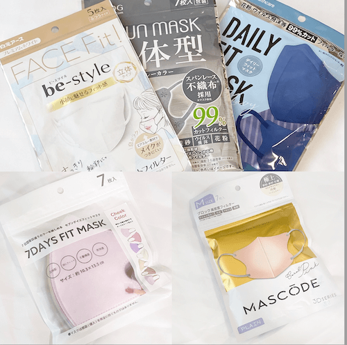 (※左から SPUN、ビースタイル、MASCODE、7DAYS FIT MASK、DAILY FIT MASK)
