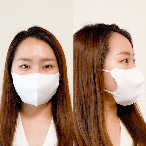くちばし型のマスクは面長顔でも顎から頬にかけてのラインがすっきりして見える上、フィット感も抜群で感染予防効果の面でも安心感があります。