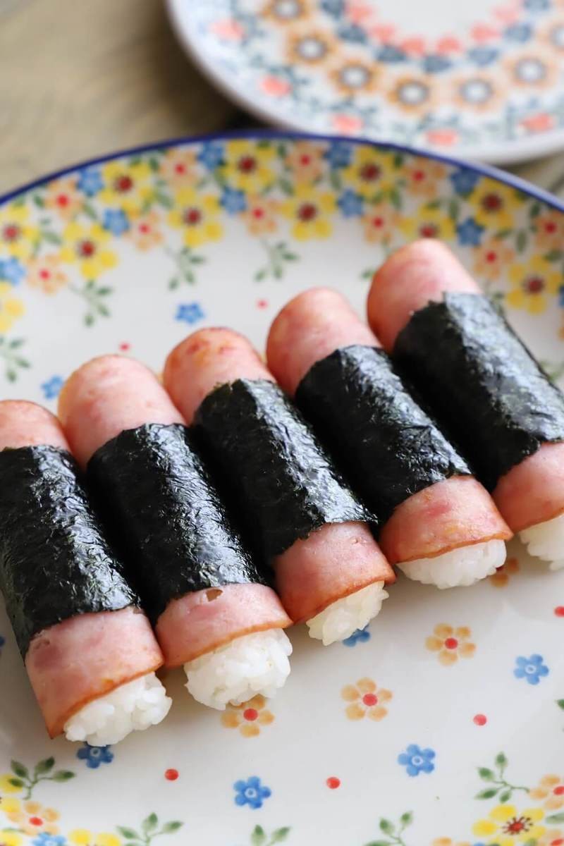 焼いたものをいただいた際、スパムに似ていると感じたのでご飯を少量包み、海苔を巻いてみました。