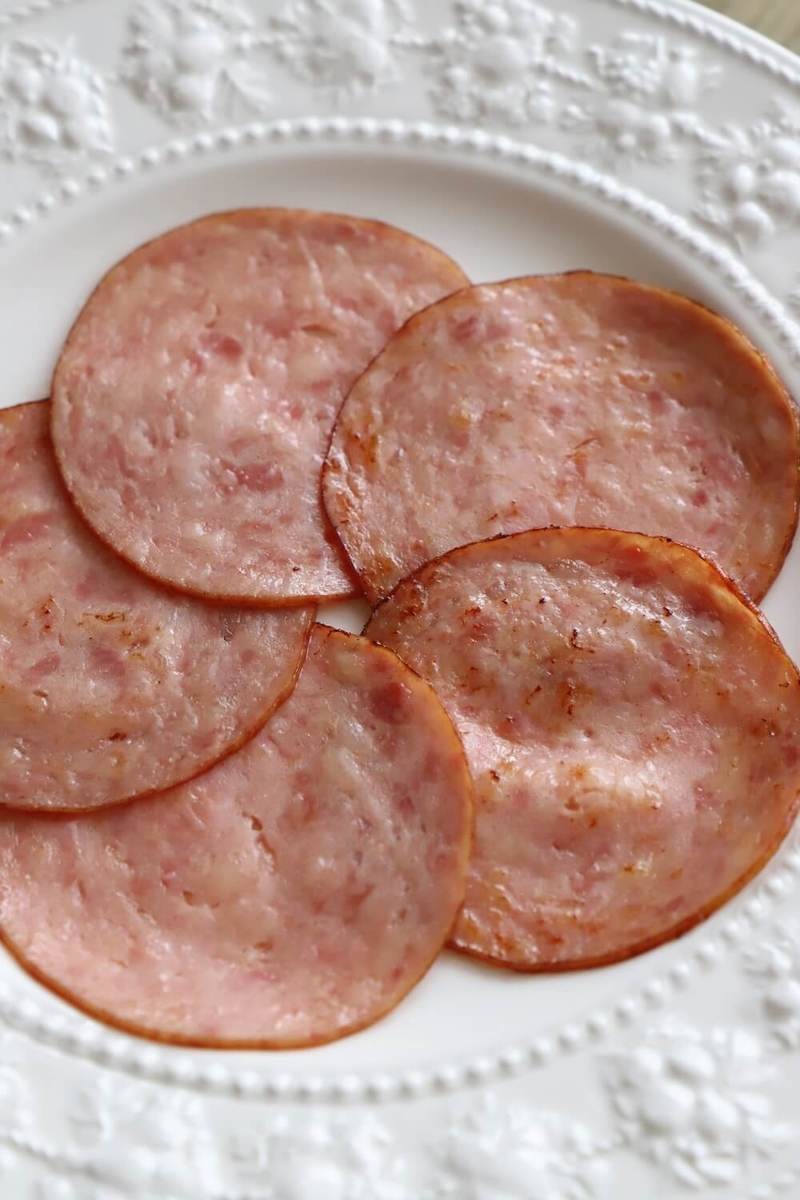 「シャウエッセンのお肉を使用した丸形のスライス」であり、シャウエッセンに仕上げる前のお肉を活用しているそうです。