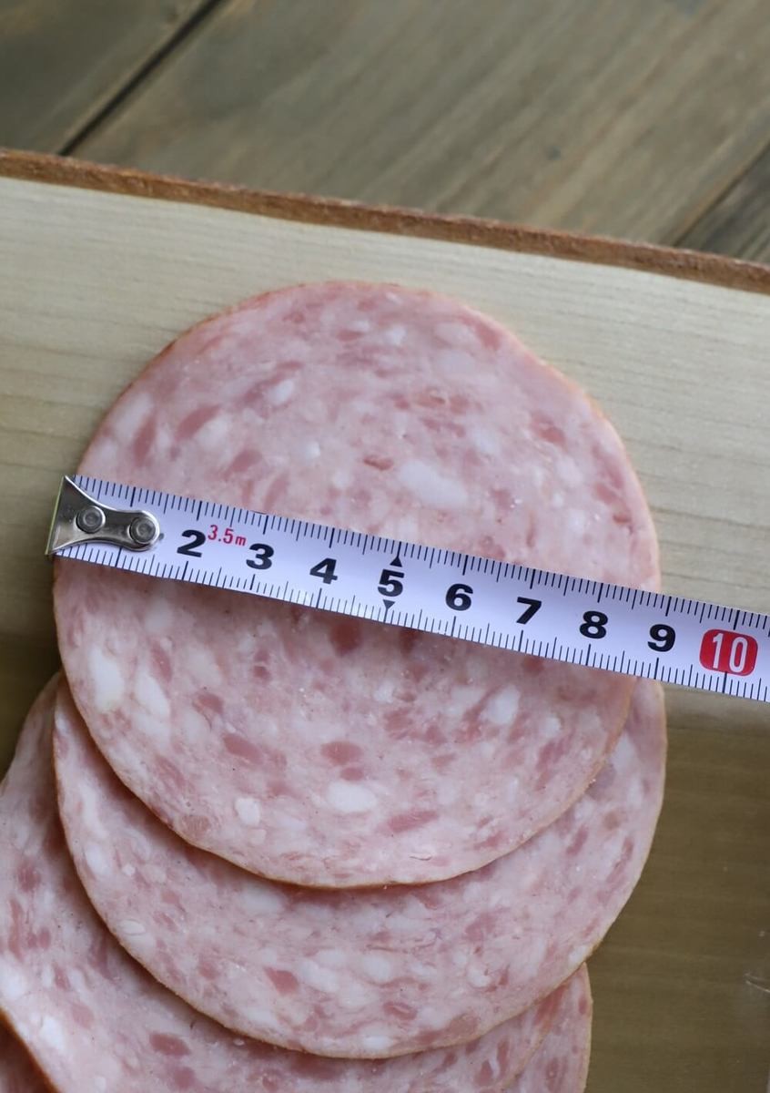 大きさは直径約9センチ、一般的なハムの大きさと言ってよいと思います。
