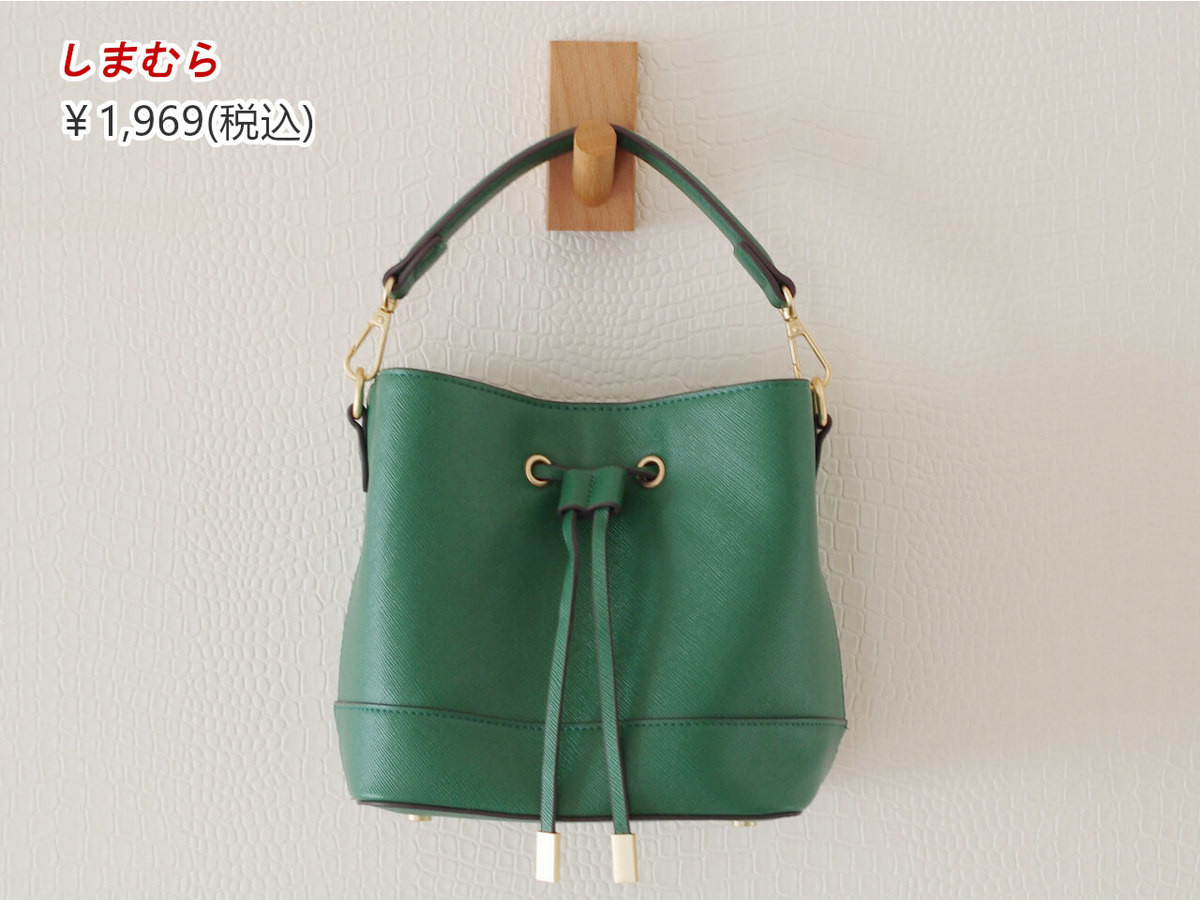ネイビーを基調とした着こなしを、バッグのグリーンで華やかに。