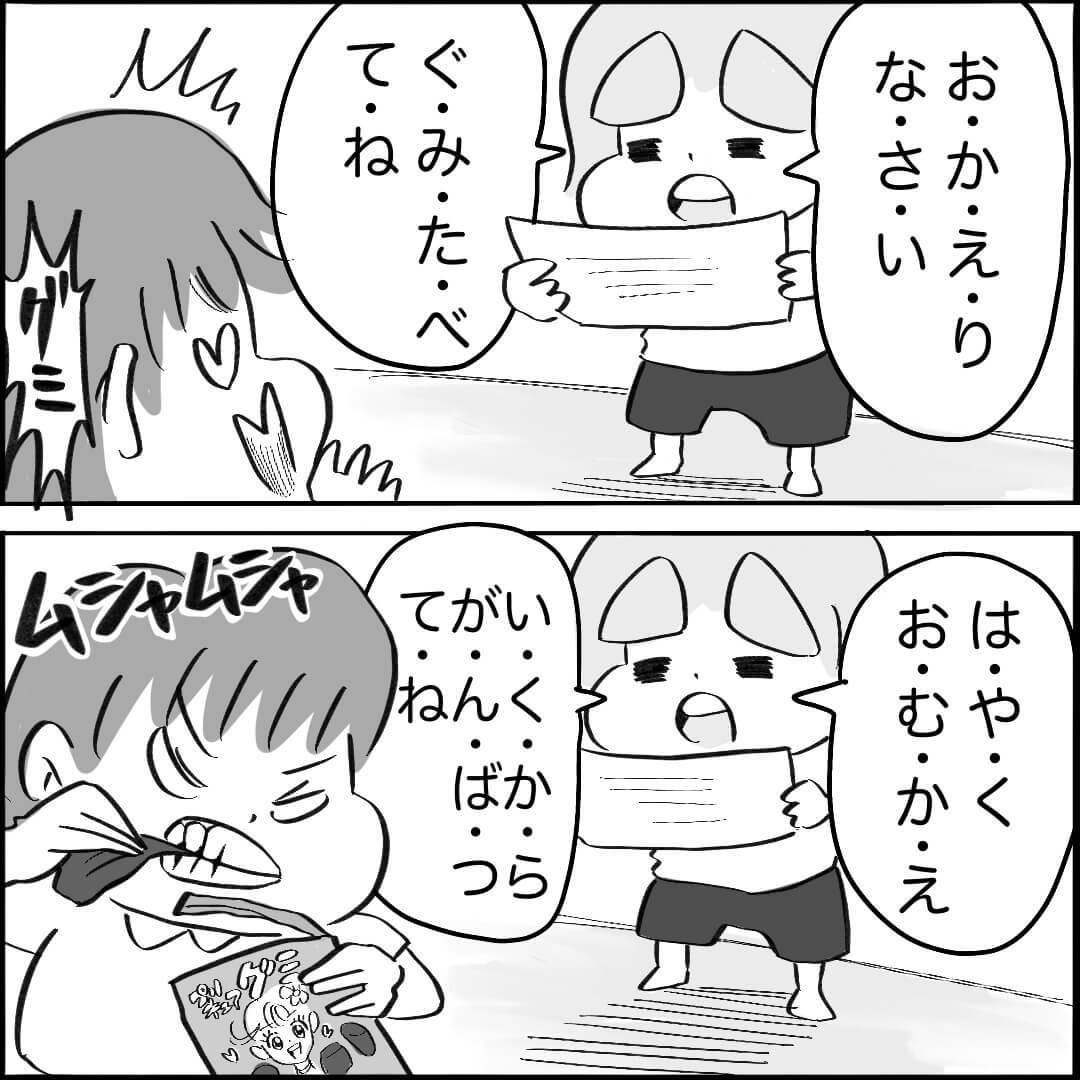 こばぱぱさんは、まぁまぁな怒り口調で「こらグミ先食べる前に、ママに何か言いなさい!!」って言ったようですが、グミの魅力には勝つのはなかなか難しいようですね。