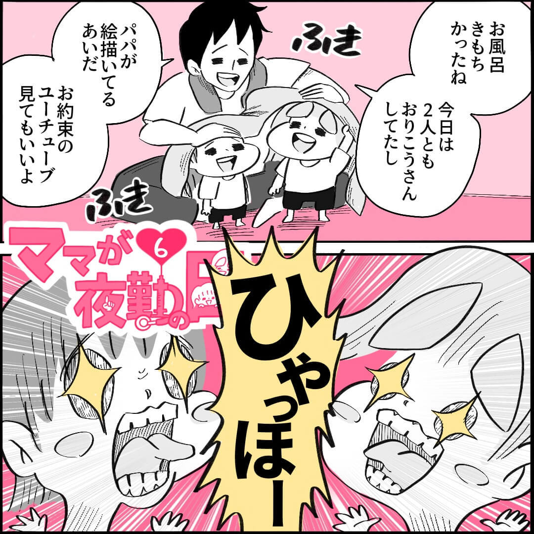 インスタグラムで話題の"パパのワンオペ"日記「ママが夜勤の日」。6歳・4歳の姉妹命の父「こばぱぱ」は、病棟看護師の母「こばまま」が夜勤中、育児に大奮闘します。