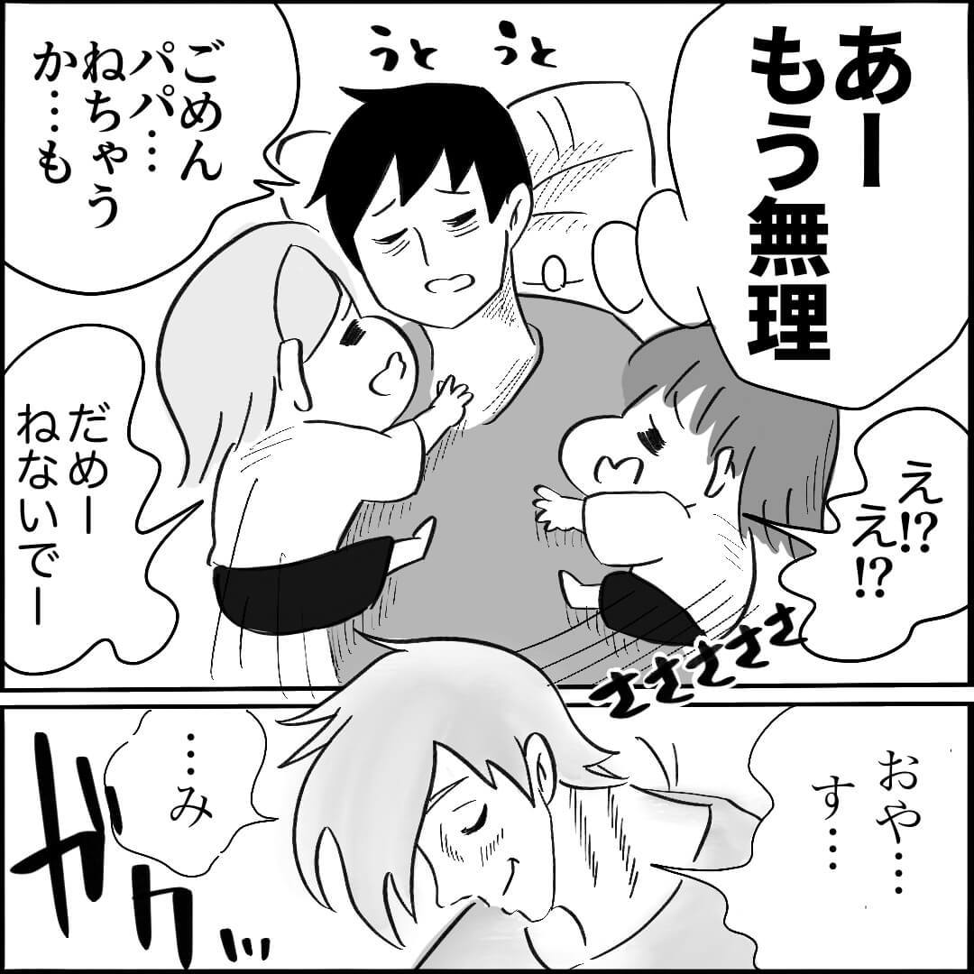 今回はハードモードな寝かしつけ編。子どもが鬼と化す姿に、共感してしまうこと間違いなし!