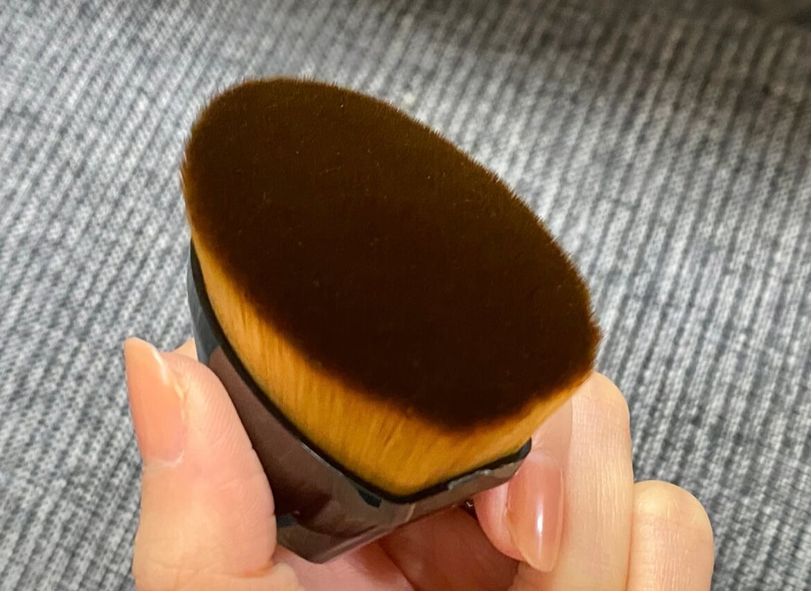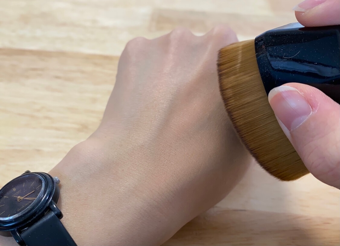 ファンデーションブラシを使って、リキッドファンデーションを塗り広げていきます。