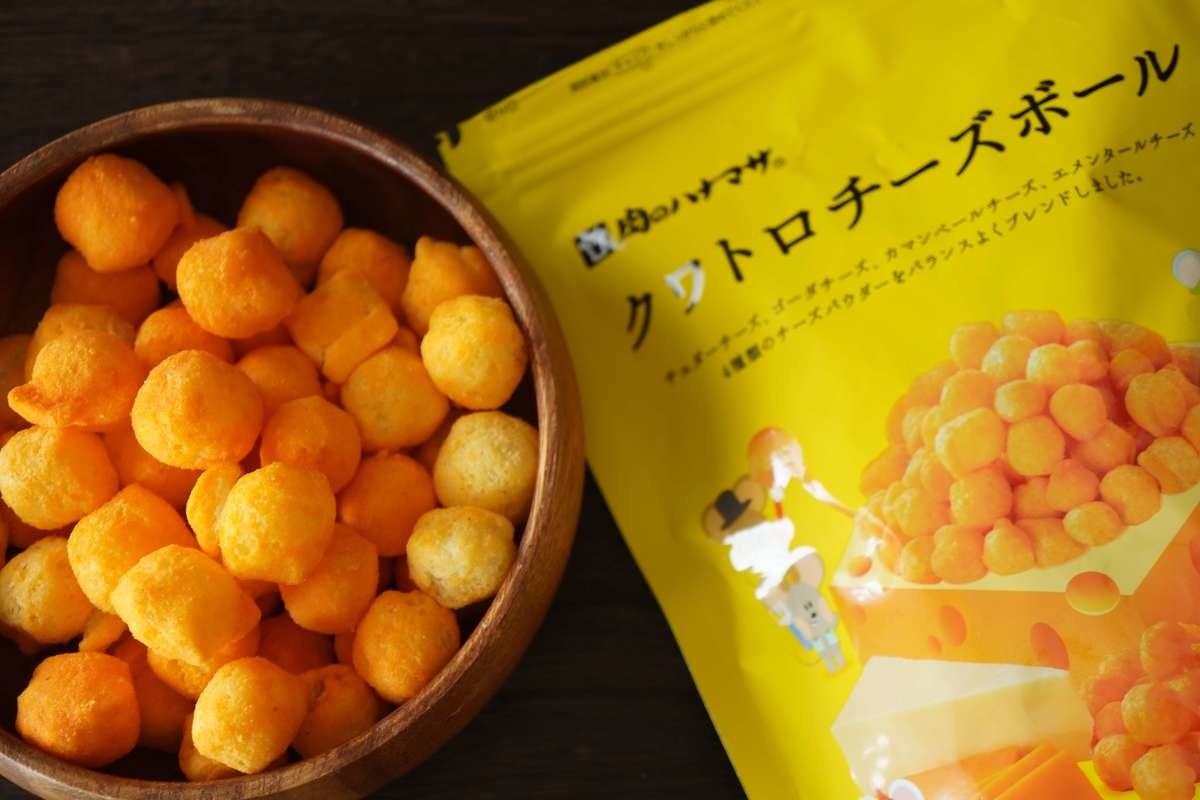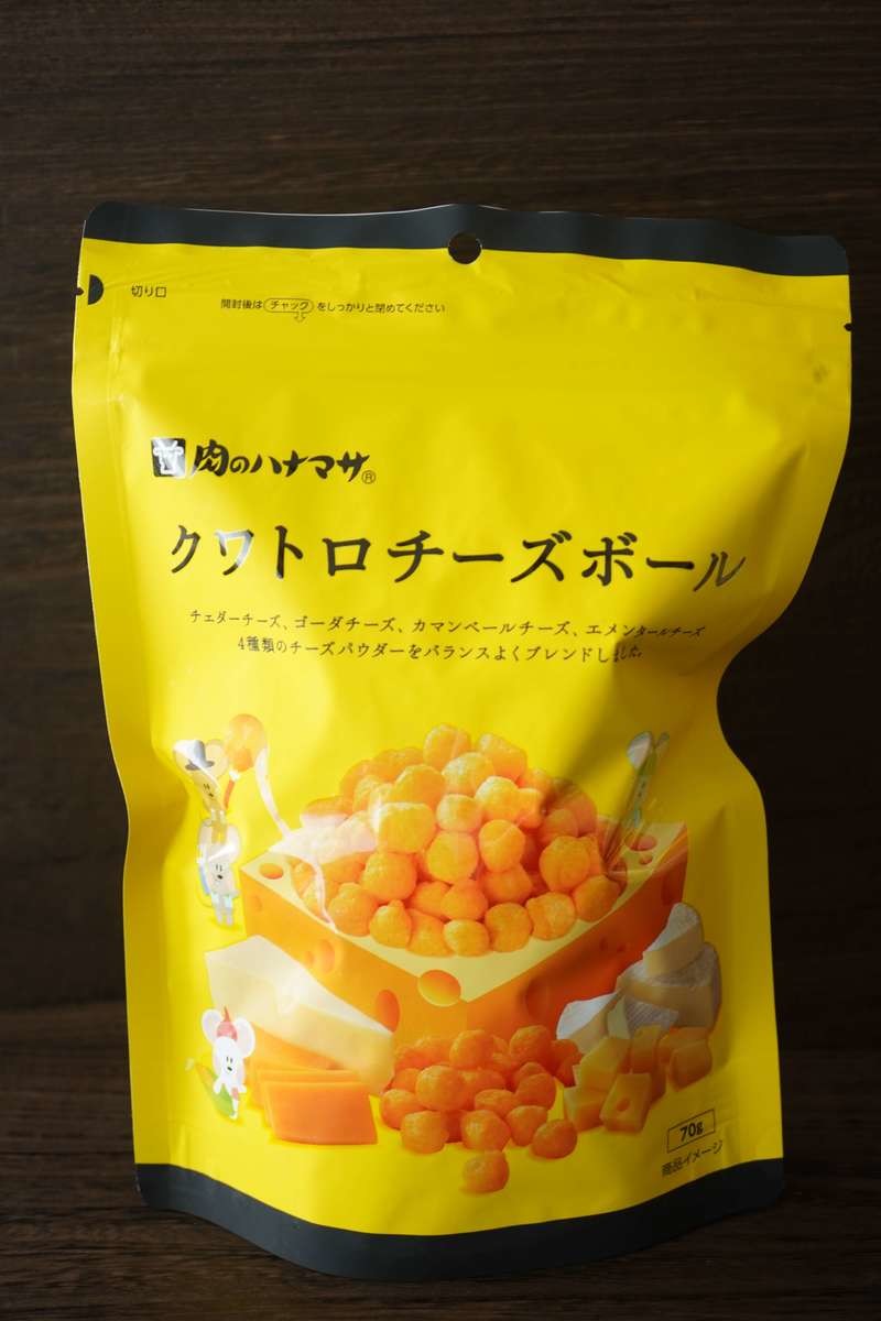 こちらはチェダーチーズ・ゴーダチーズ・カマンベールチーズ・エメンタールチーズの4種類のチーズパウダーで味つけされたスナック菓子です。