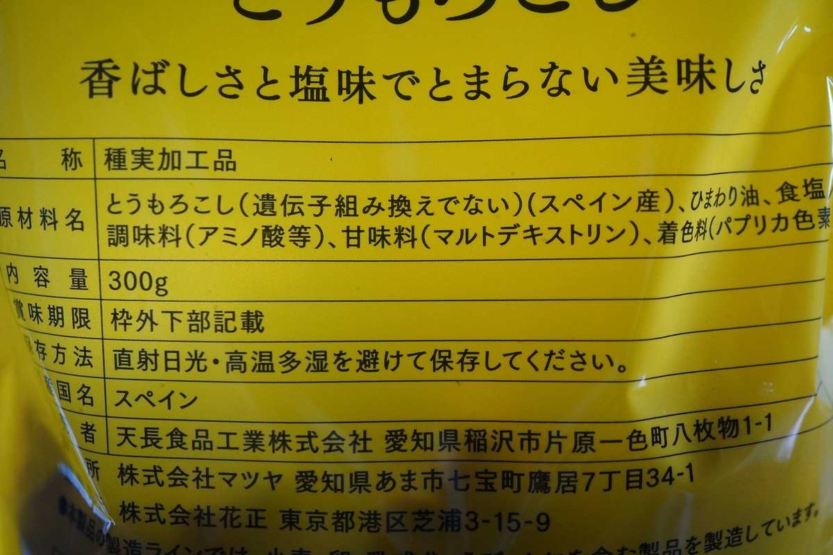こちらはスペイン産の遺伝子組み換えでないとうもろこしをひまわり油で揚げたおつまみです。