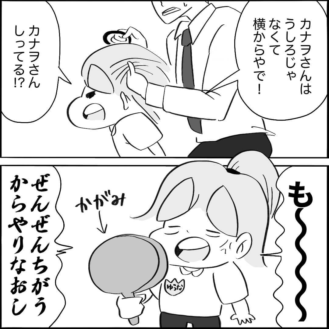 「髪の毛くくるのって超ムズイんですけどー!!!前日こばままに教えてもらうんだけど、ここをこうやってこうしてこう!!みたいな感じでなので……習得できる気がしない(笑)。てかそもそも、クソ急いでる朝に難易度の高いリクエストしてくなー!!!」(こばぱぱさん)