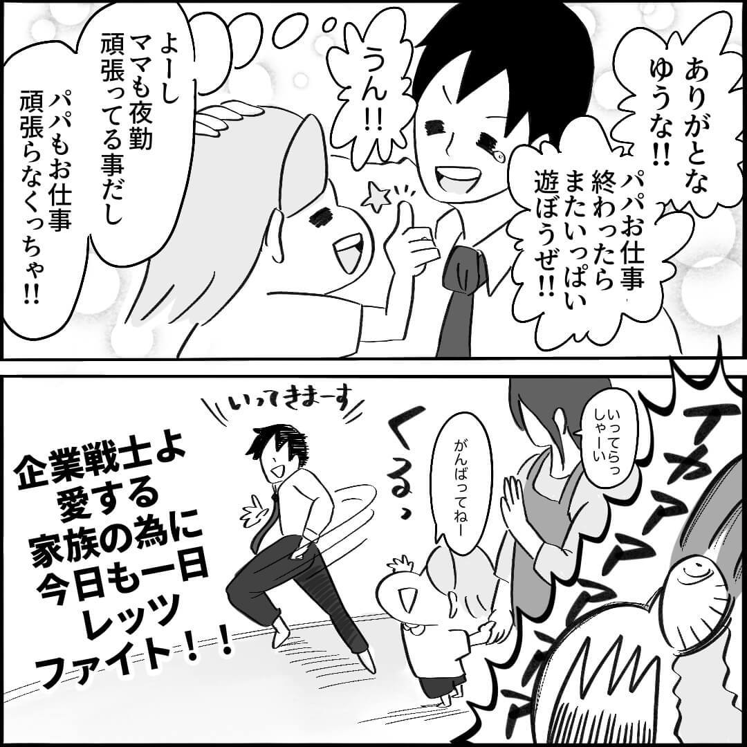 「子育てって大変だけど楽しいこともあるし、明日からまた頑張ろって気持ちになってもらえたらと思い、描き始めたのがこの漫画でした。働きながら家事や子育てをしてる方にとってまだまだ生きづらい世の中ではありますが、脳内で妄想とかしてストレス発散しましょうね(笑)」(こばぱぱさん)
