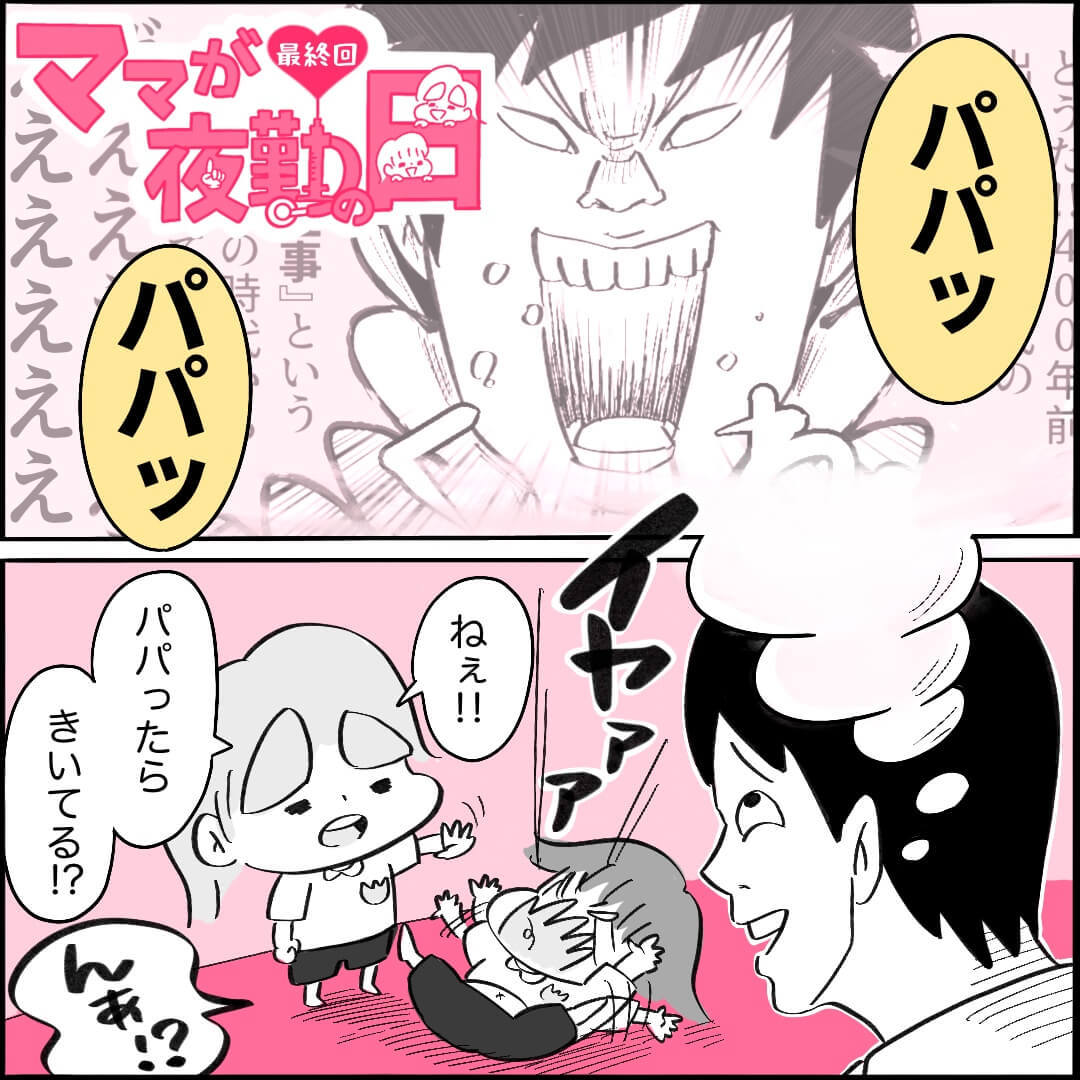 インスタグラムで話題の"パパのワンオペ"日記「ママが夜勤の日」。6歳・4歳の姉妹命の父「こばぱぱ」は、病棟看護師の母「こばまま」が夜勤中、育児に大奮闘します。