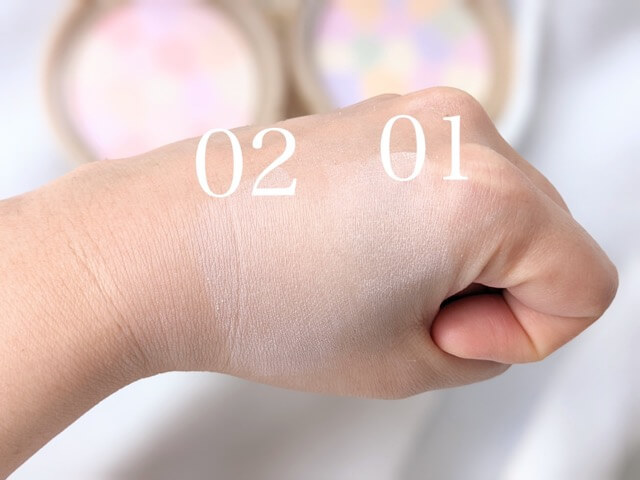 2色を比較するとこのような感じ。02の方がややピンクよりで血色感があります。