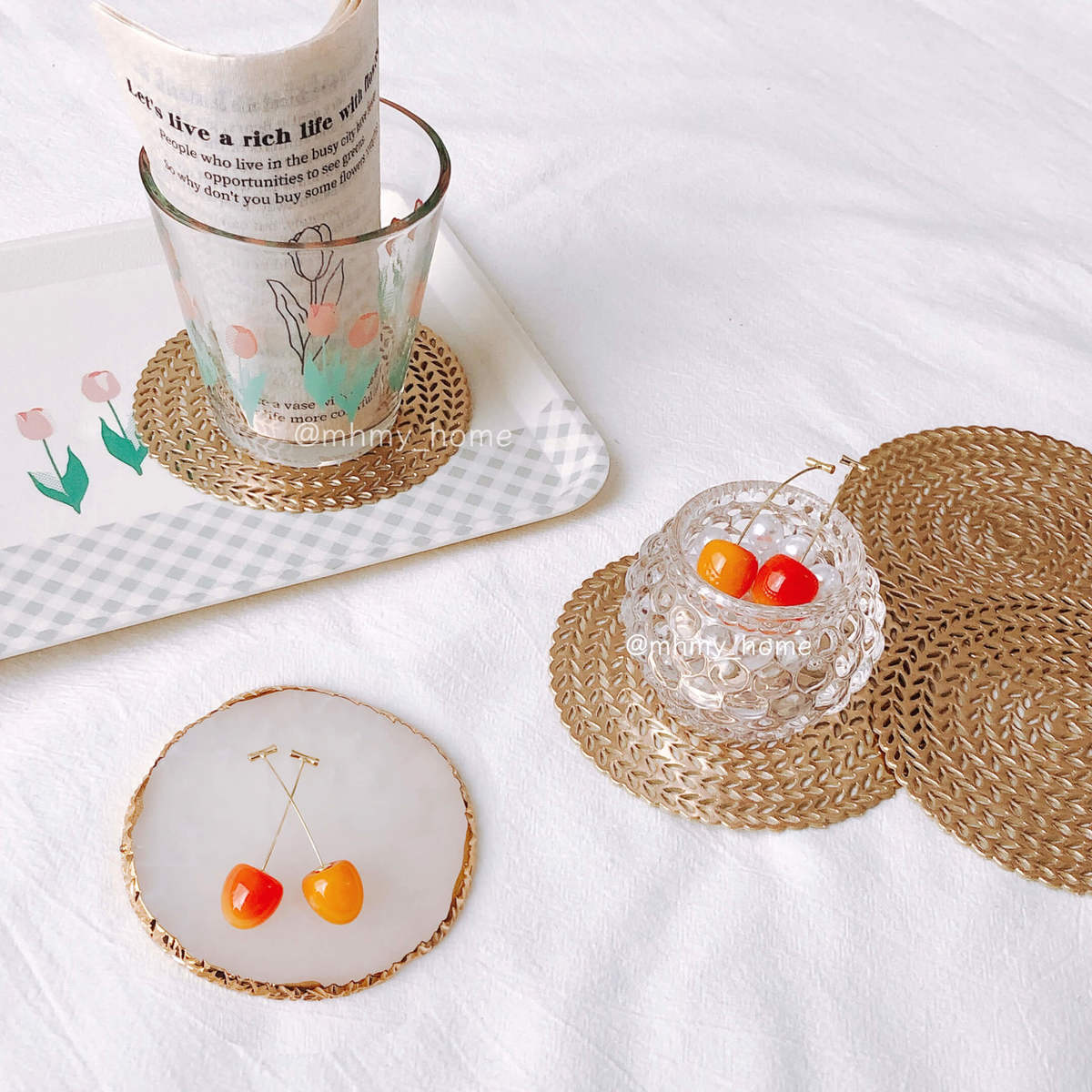 ゴールドがおしゃれなグラス下のリーフコースターは、なんと4枚セットで110円(税込)とコスパ最高です。