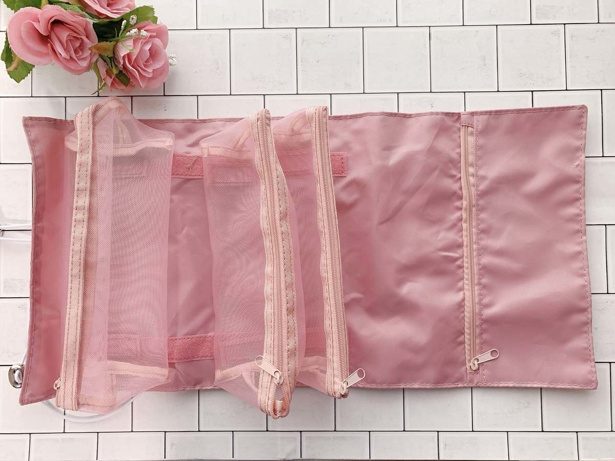 メッシュ素材のポーチがまさかの3つ!見た目以上の収納力に驚きを隠せません。