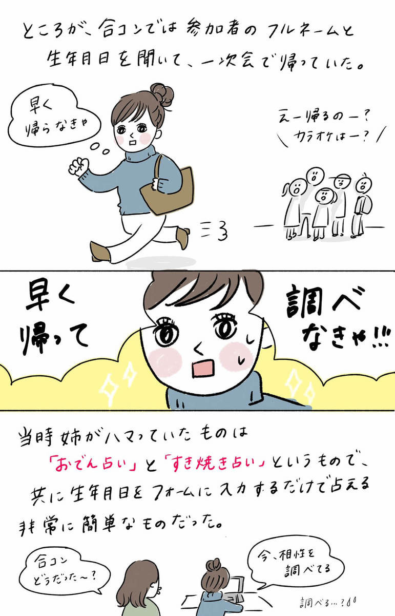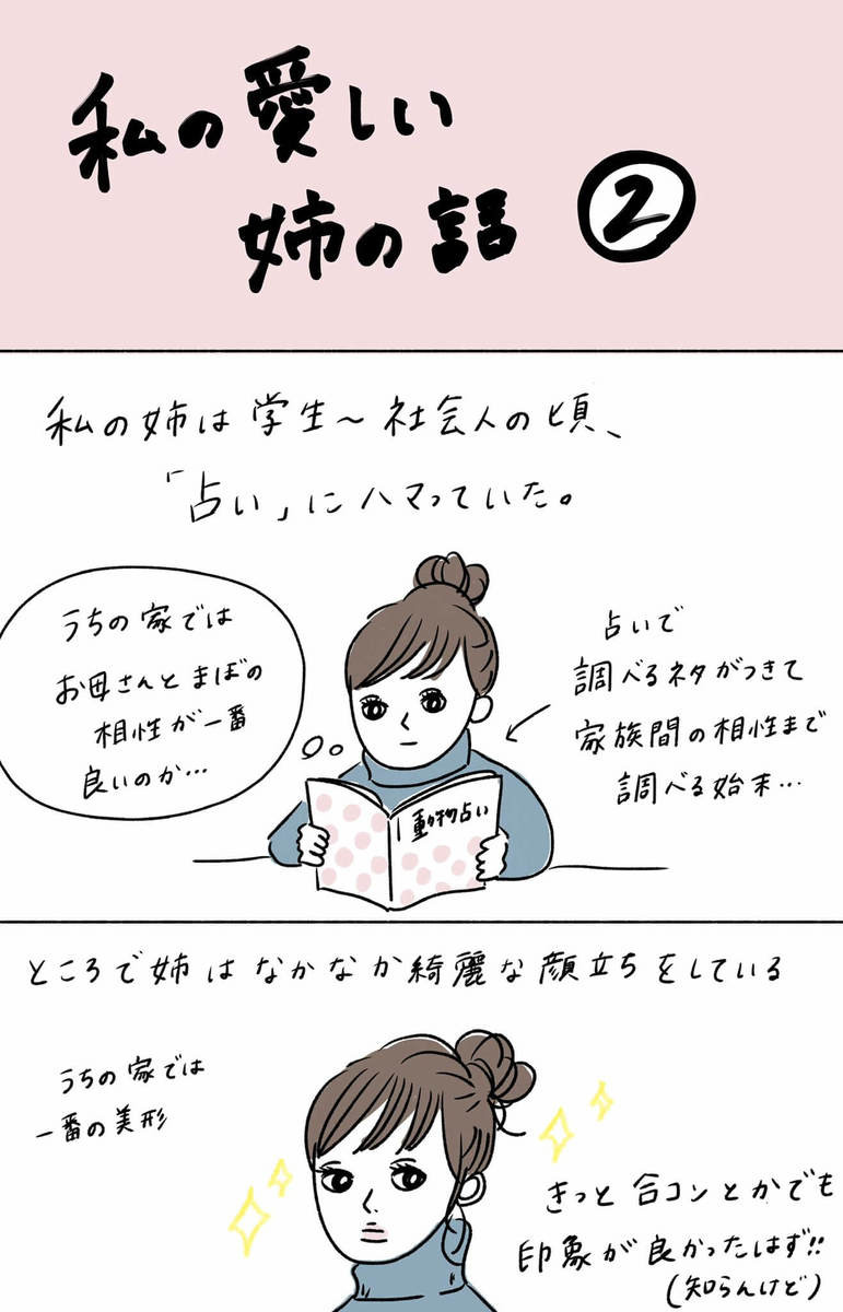 合コンの相手を占いの相性で妹にすすめる姉(笑)。 そんな仲のよい姉と喧嘩してしまったある日のこと……。