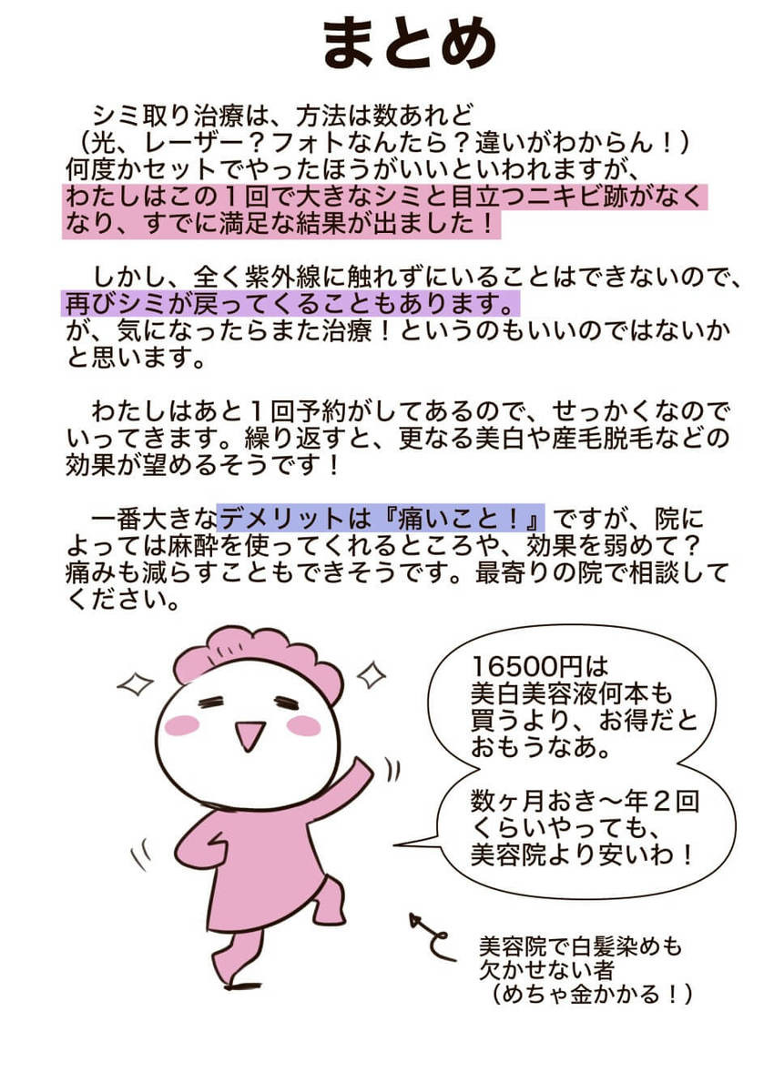 ※これは個人の体験談です。シミ取り施術を受ける場合は専門医に相談してください。