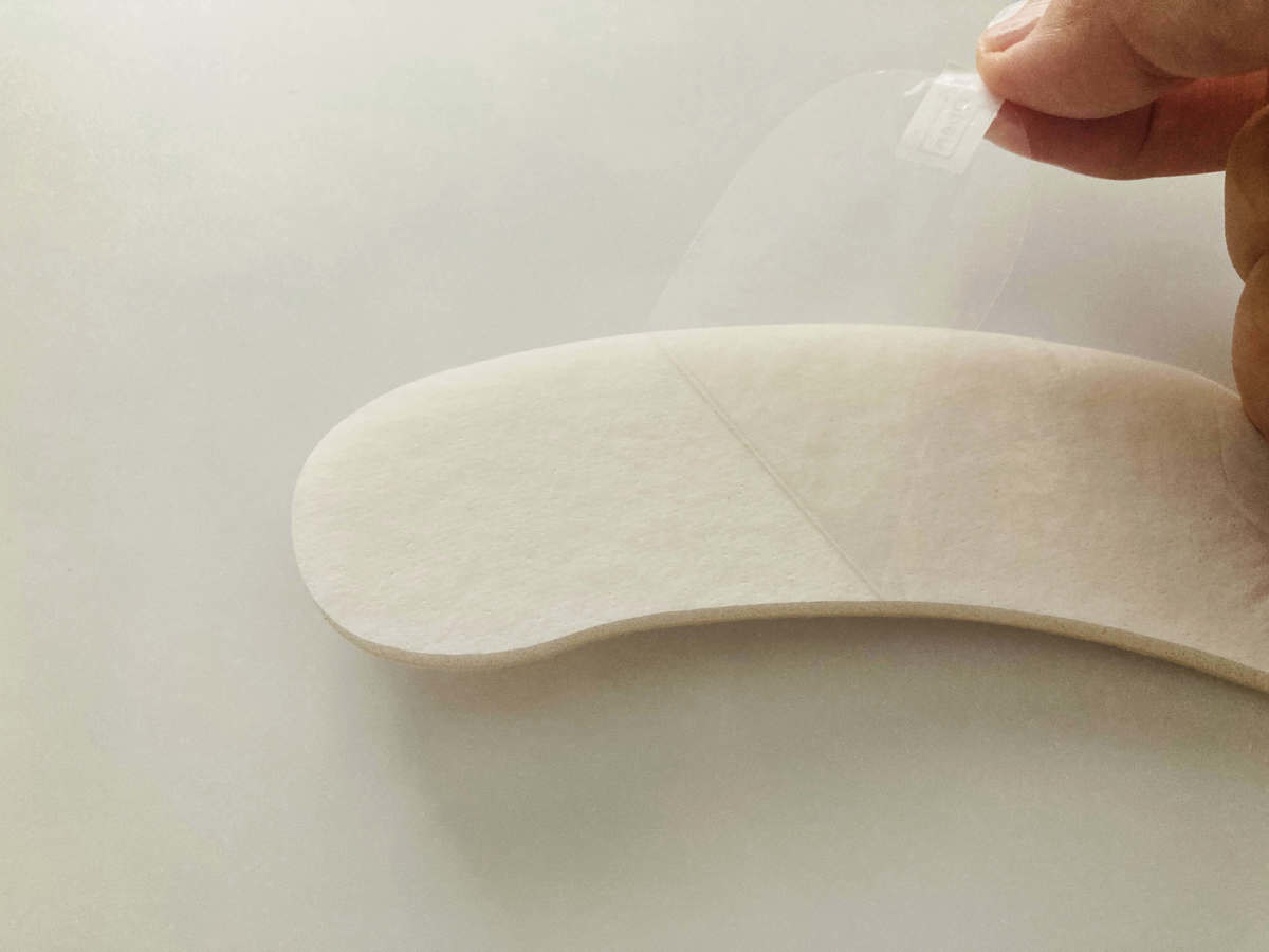 実際に使う前に、抗菌防臭便器パッドの裏側にある透明なシートをはがします。透明シートをはがすと吸着シートになっていて、便器に貼ってもずれにくくなります。