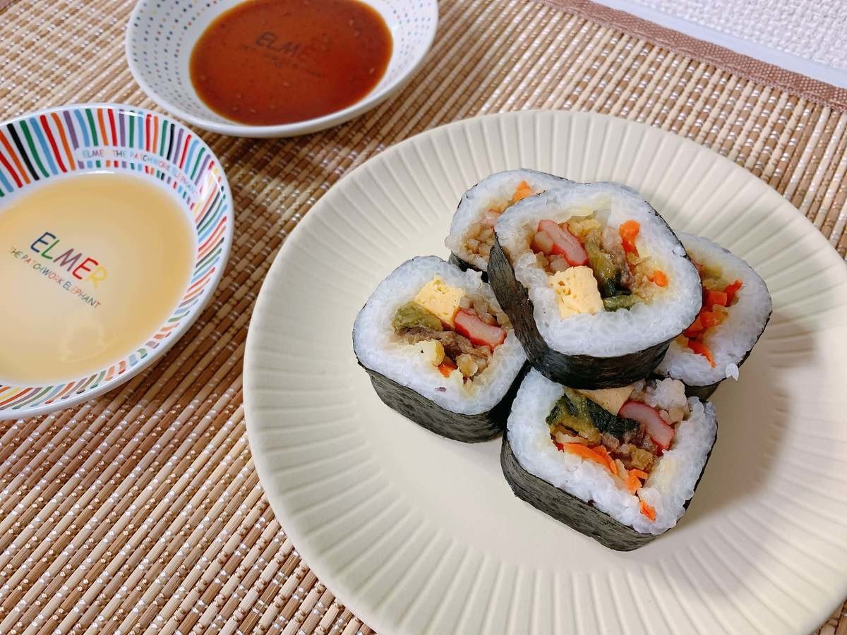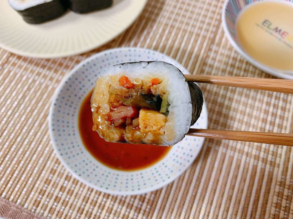 カットされているのが本当にありがたい。断面がキレイですよね。私がカットしていたら、海苔や具材がぐちゃぐちゃになっているところです……。
