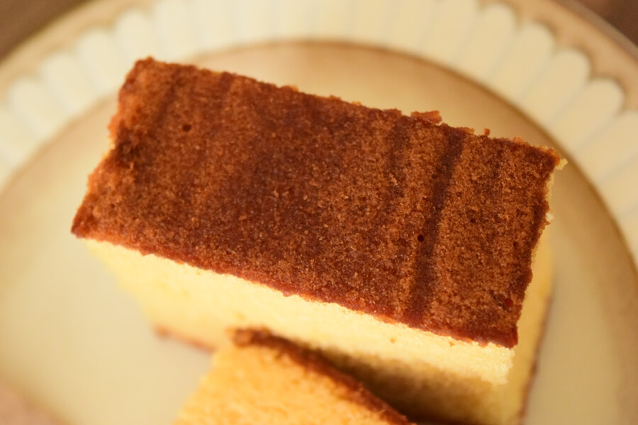 カットされた状態のカステラが9切れ入っています。刃物の持ち出し不要なのは地味に嬉しいポイントです。