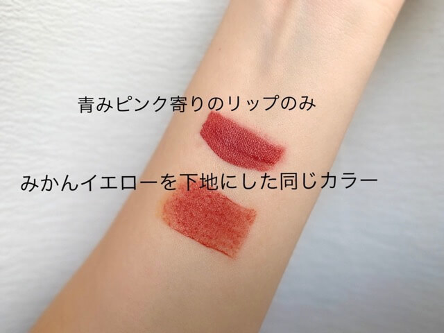 青みが強いカラーは、イエベ肌の方は不得意と言われていますが、リップベースにイエローをのせることで、色補正をして肌になじみやすくするという技も浸透してきました。