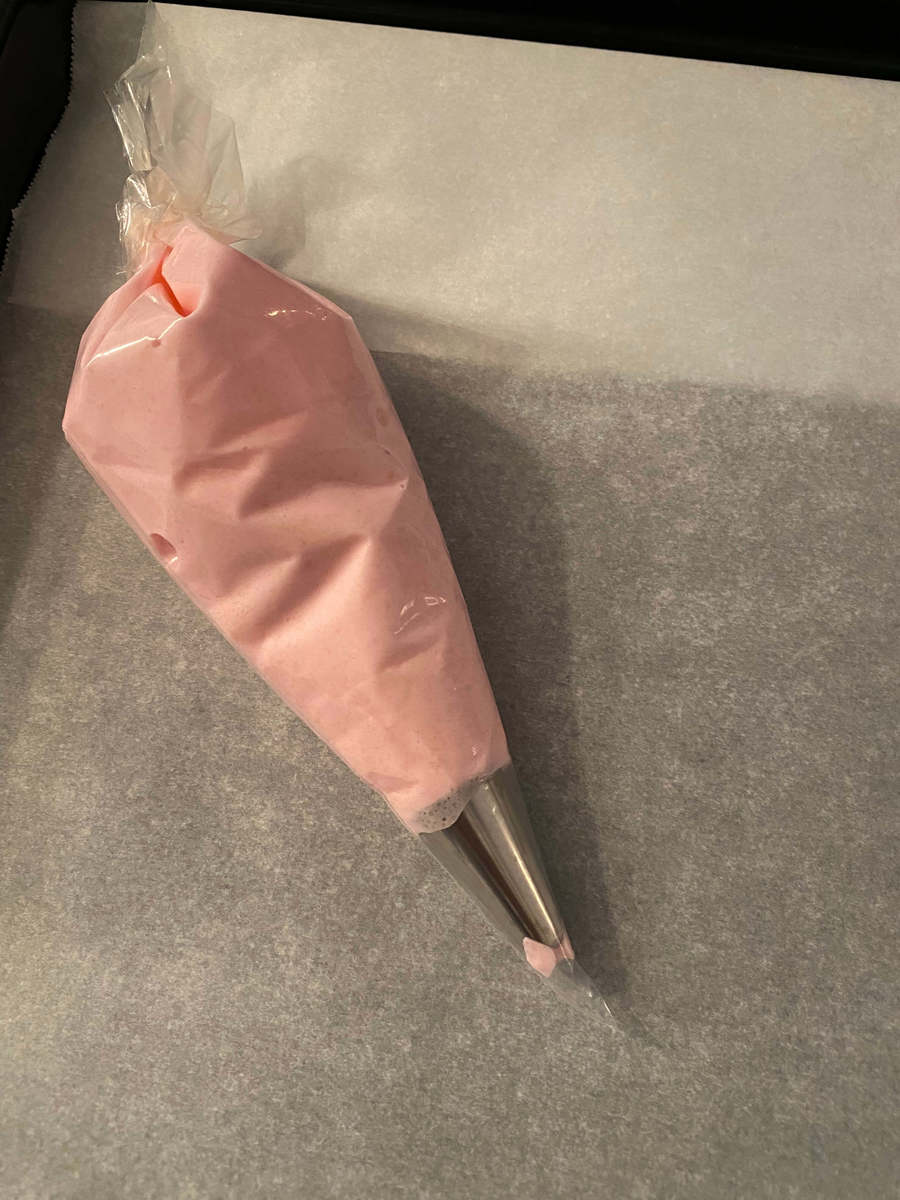 やはりマカロナージュのやり方が良くなかったのか、ピエの部分が未熟でしたが、なんとか完成しました。
