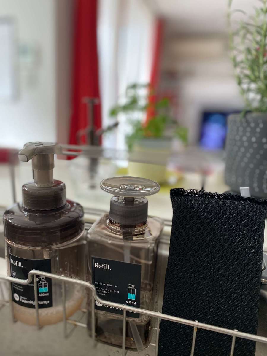 ボトルを持つことなく、押すだけなので、洗剤の継ぎ足しも片手でできる優れもの。