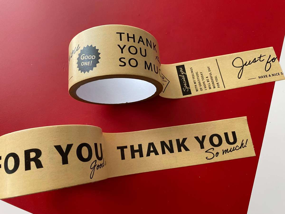フリーマーケットアプリなどで物を売る際に、欠かせないアイテムとなりました。先方に少しでもきれいでおしゃれな状態でお送りしたいですし、「THANK YOU」というロゴが入っているのも使い勝手が良いです。