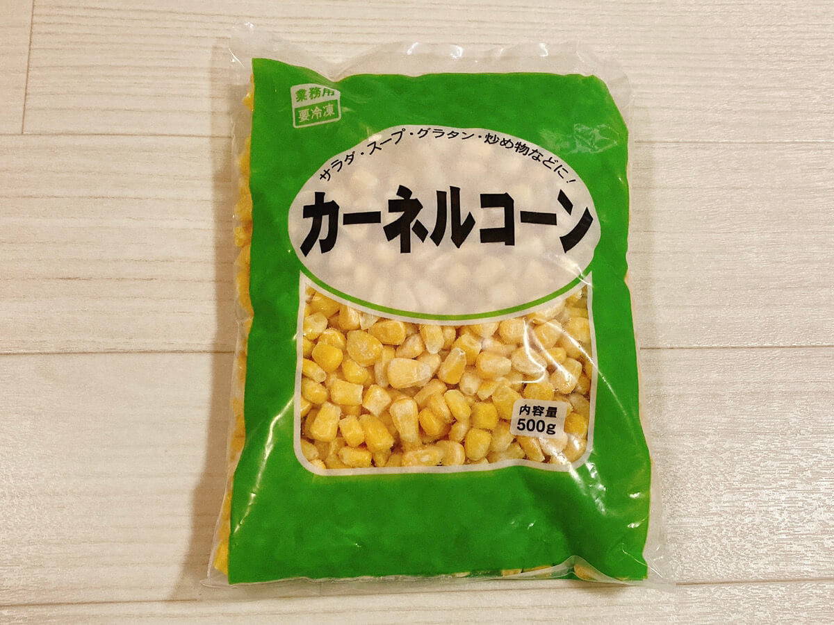 缶詰のコーンも安いのですが、最近は冷凍のカーネルコーンを鬼リピしています。 好きなだけパラパラっと出せるので、使い勝手が良いんです!