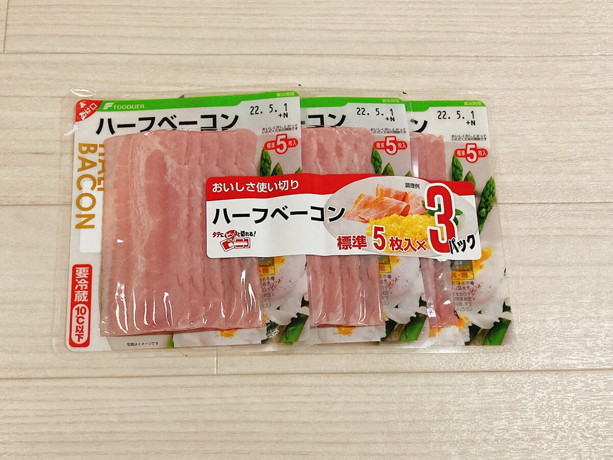 業務スーパーセール買ったもの6:ハーフベーコン(5枚×3パック):税込138円