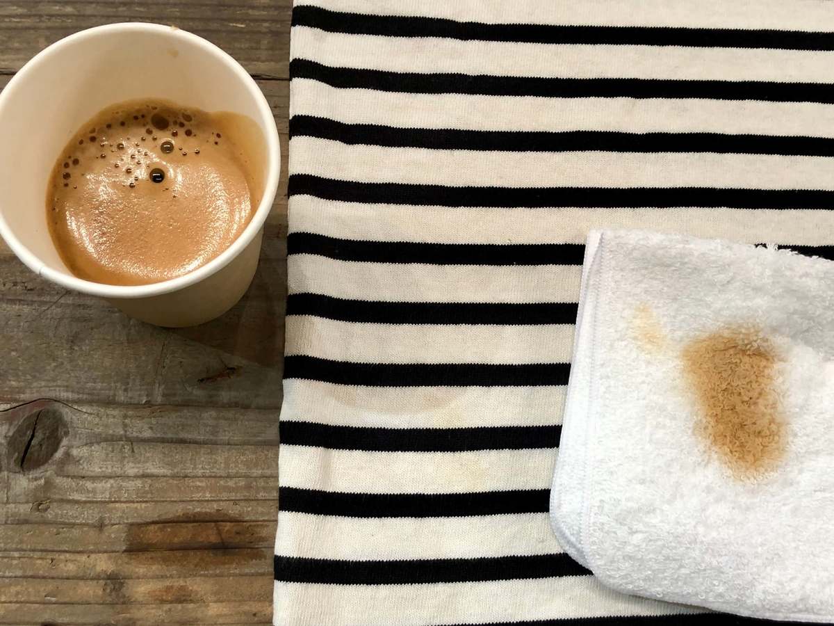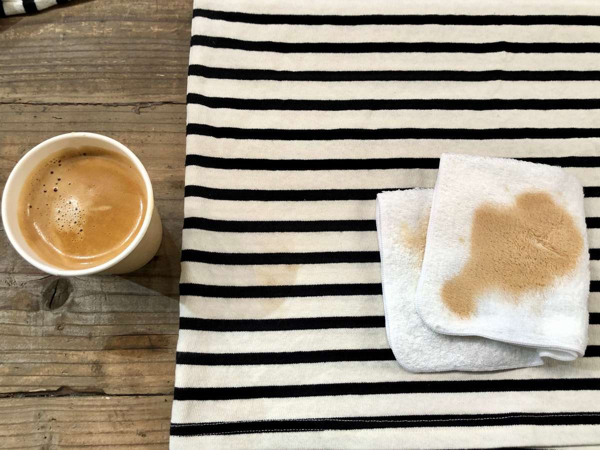 さらにタオルで拭き取ると、シャツにはコーヒーの跡形もなくなっています。反対に、タオルにはしっかり染みこんでいますね。