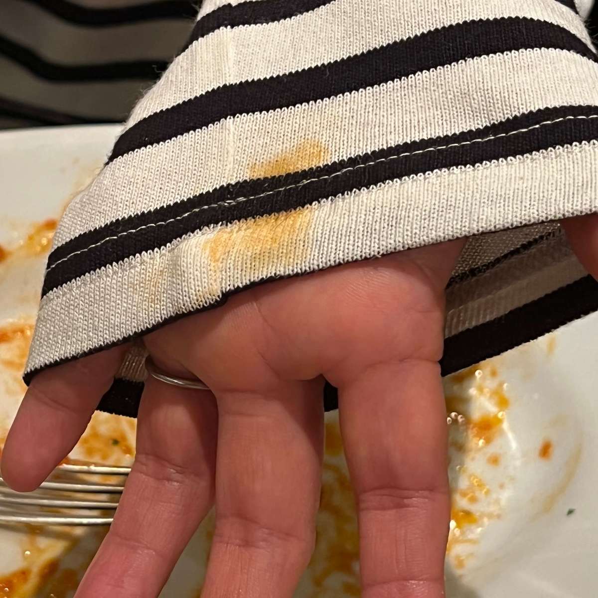 メリット4.トマトソースは洗濯したら落ちた