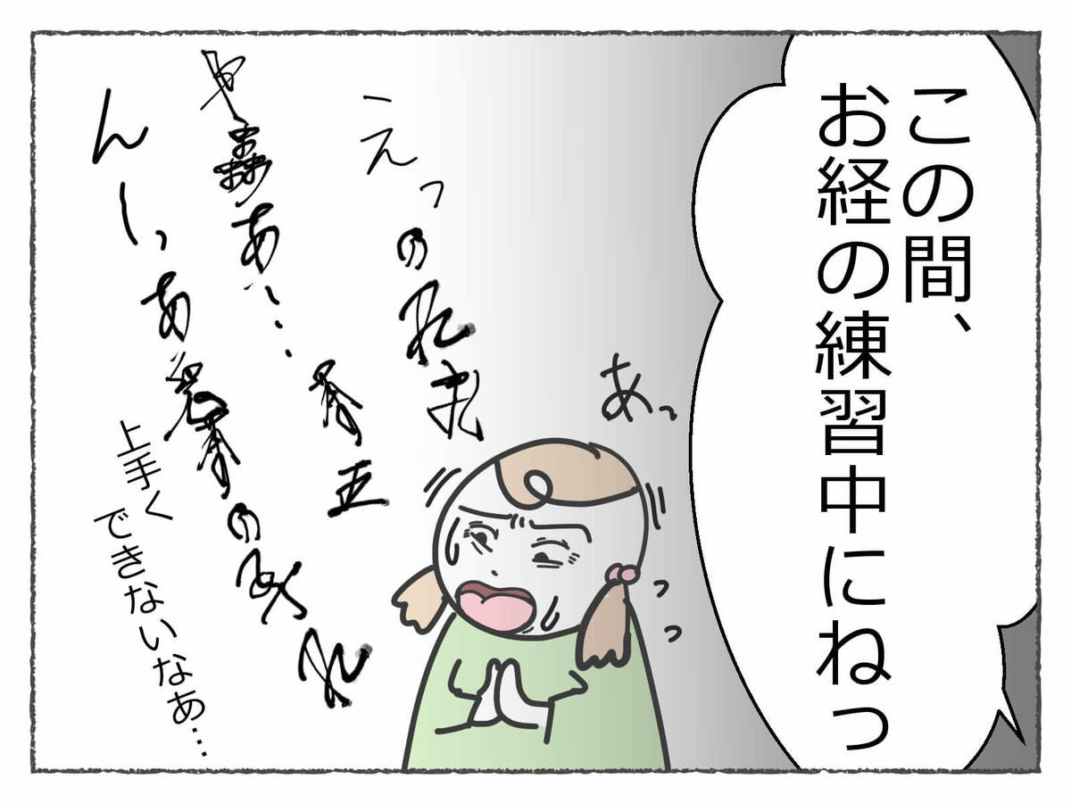 小さいのにお経を一生懸命練習をしている姿を見て、泣けてくるのは私だけでしょうか……?(涙)そして最近、何も努力していないことに気づかされました(脱線)。