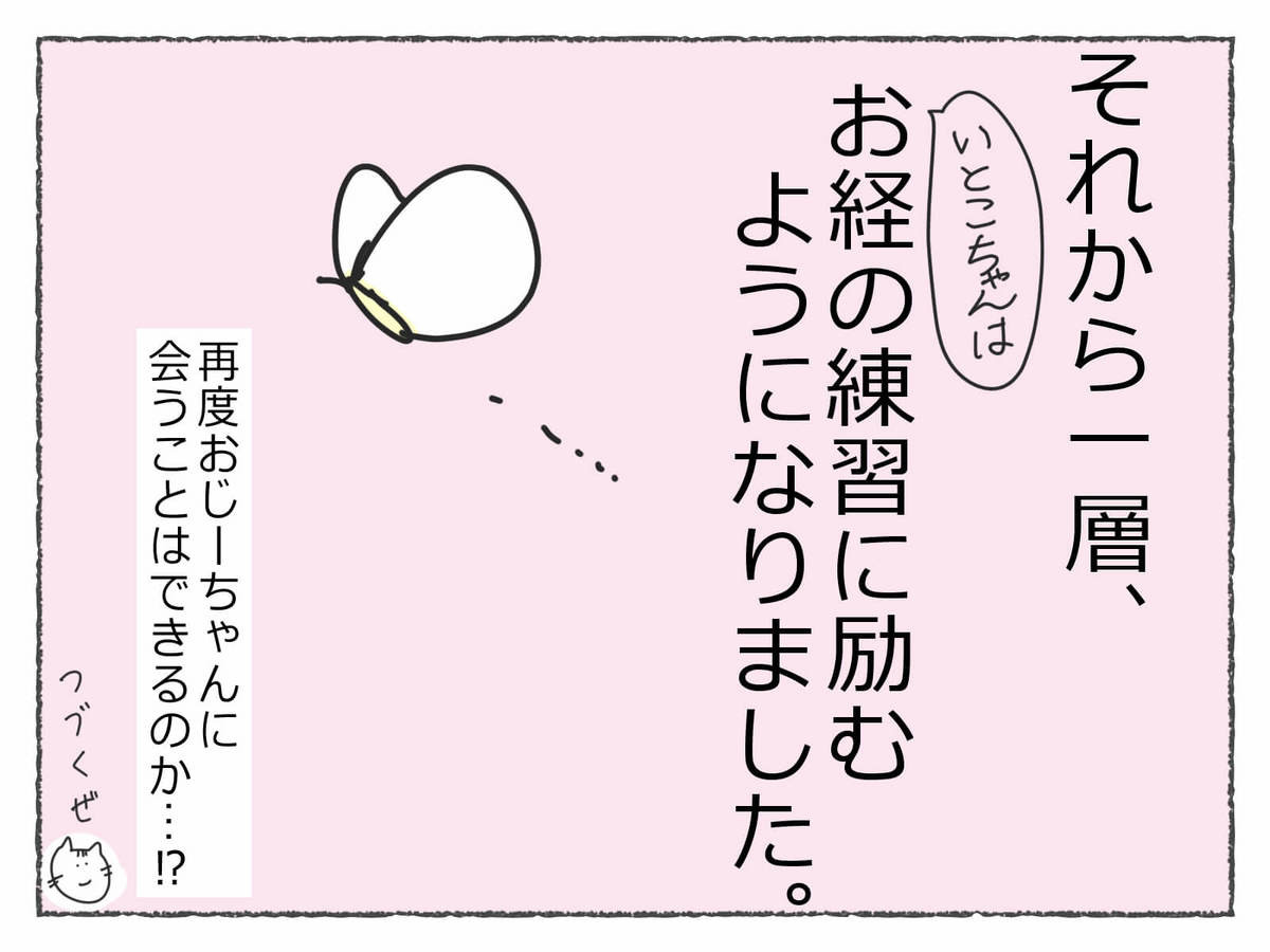 さて、本題に戻ります!さらなる上達のために毎日練習に励むいとこ。果たして再度祖父に会うことはできるのか……!?次回の更新をお楽しみに。