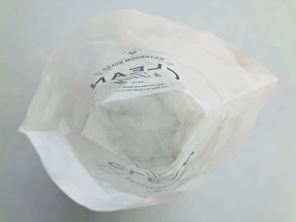 ゴミ袋の質感はマットな手触りで、まるでラッピング袋のようです。